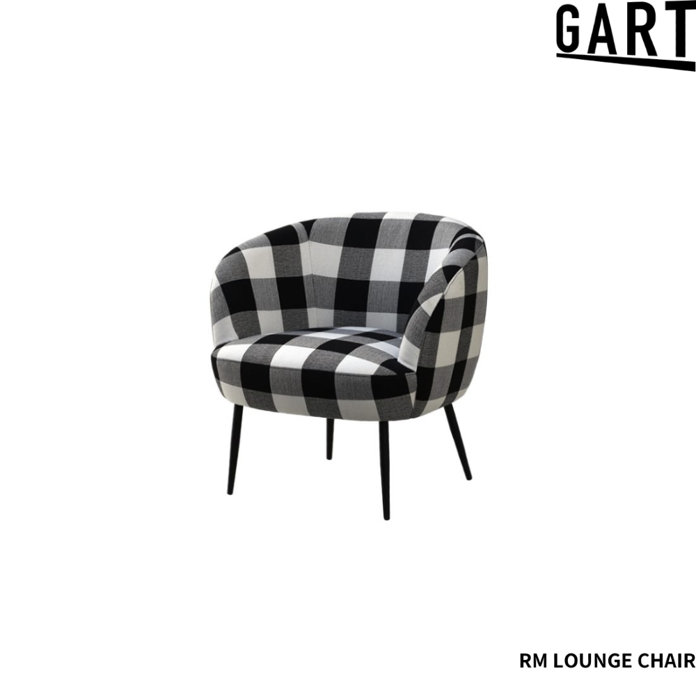 GART RM LOUNGE CHAIR ラウンジチェア ブロックチェック柄 ファブリックチェア スチール脚 1人掛け ソファチェア パーソナルチェア くつろぎ 椅子 インダストリアル モダン リビング 書斎 店舗