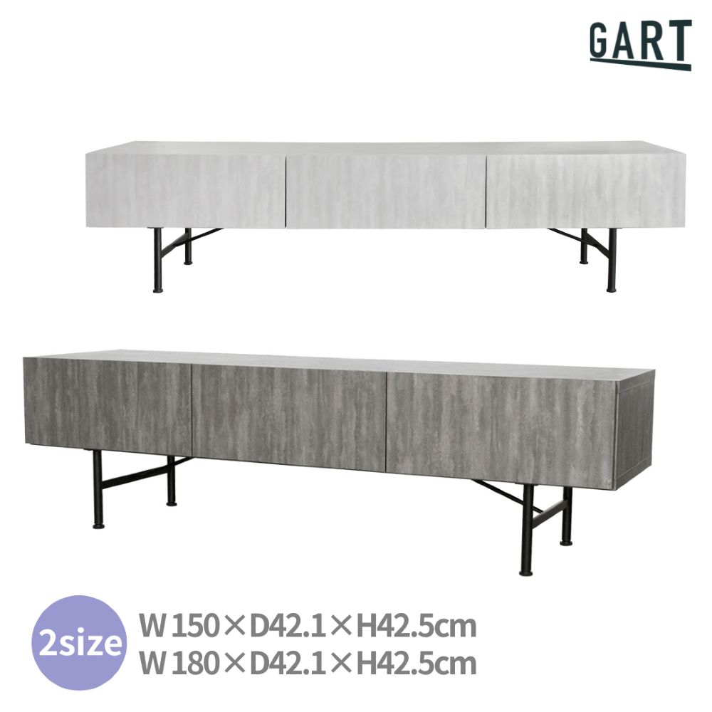 【GART ガルト】SR 180 TV BOARD / SR 150 TV BOARD テレビボード 幅180 幅150 ロータイプ 石目調 AVボード ローボード 収納付き スチール脚 ヴィンテージ モダン リビング収納