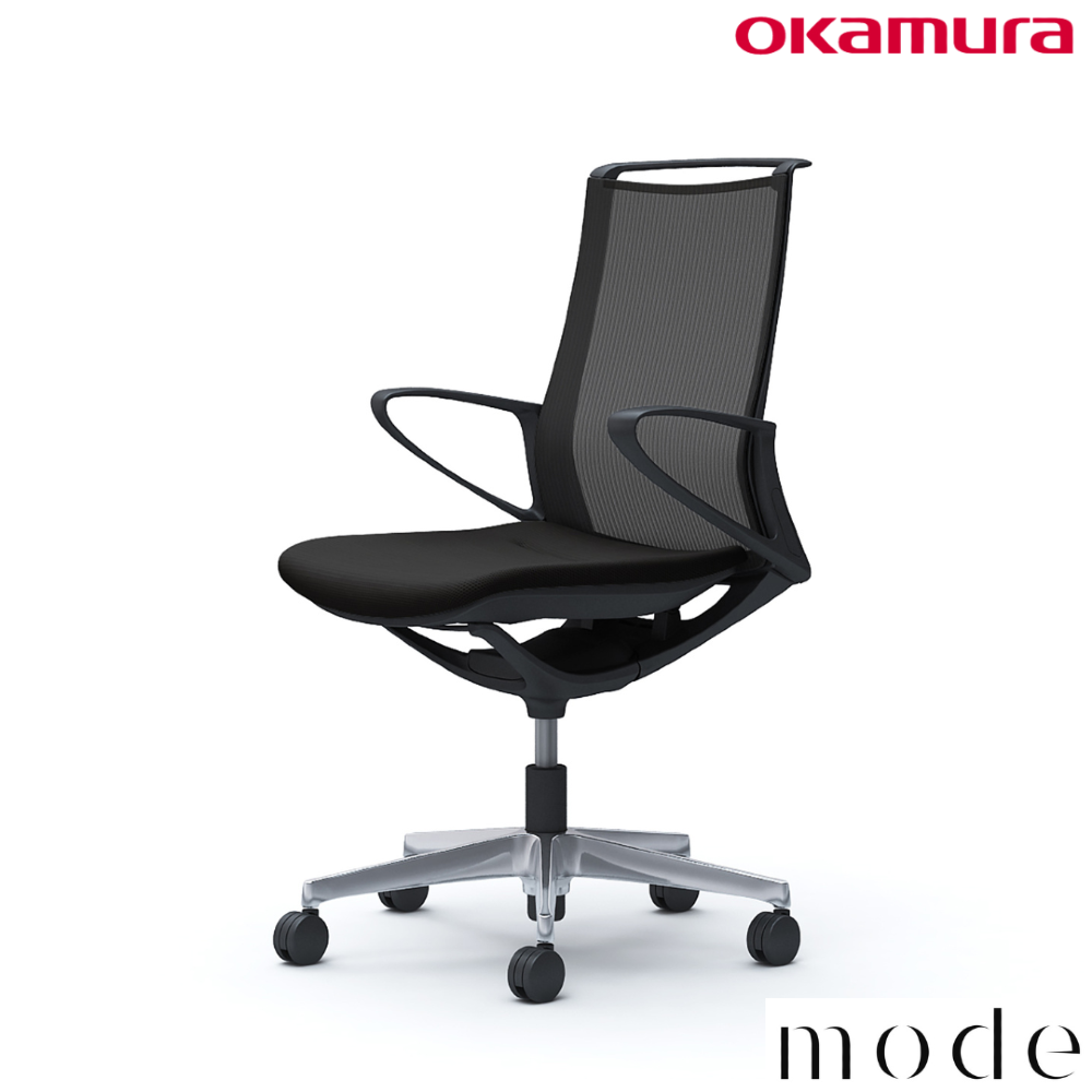オカムラ モード メッシュタイプ 固定肘 ミドル ブラック 5本脚 樹脂フレーム ブラックボディ プレーンメッシュタイプ CA21BR FKA1