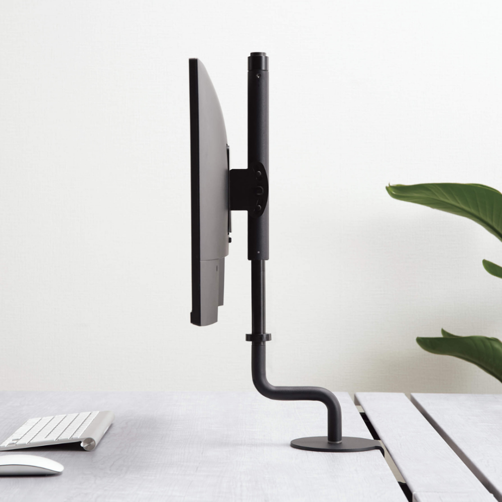 無骨なメカっぽさを抑えたリビングライクなデザインで、働きやすさと空間の美しさを両立させたい大人のためのモニターアームです。