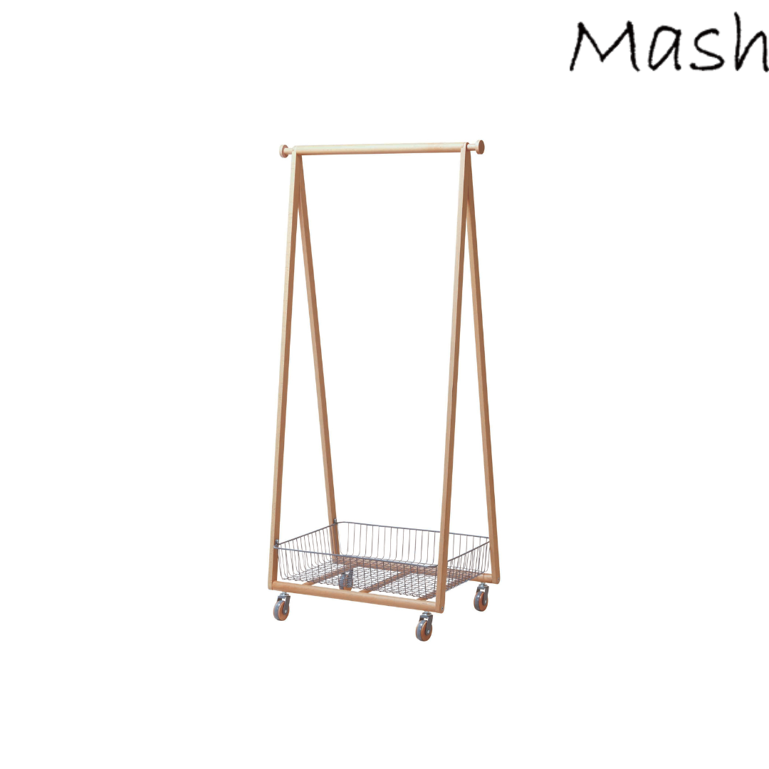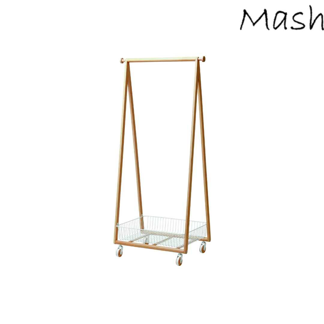 掛ける収納とバスケット収納を一体化したLIVコートハンガー。