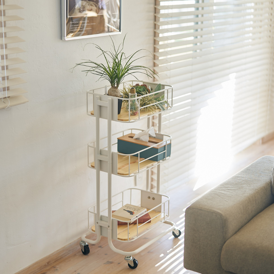 キッチン・リビング・デスクサイドなど、あらゆるシーンで活躍する多用途ワゴン。