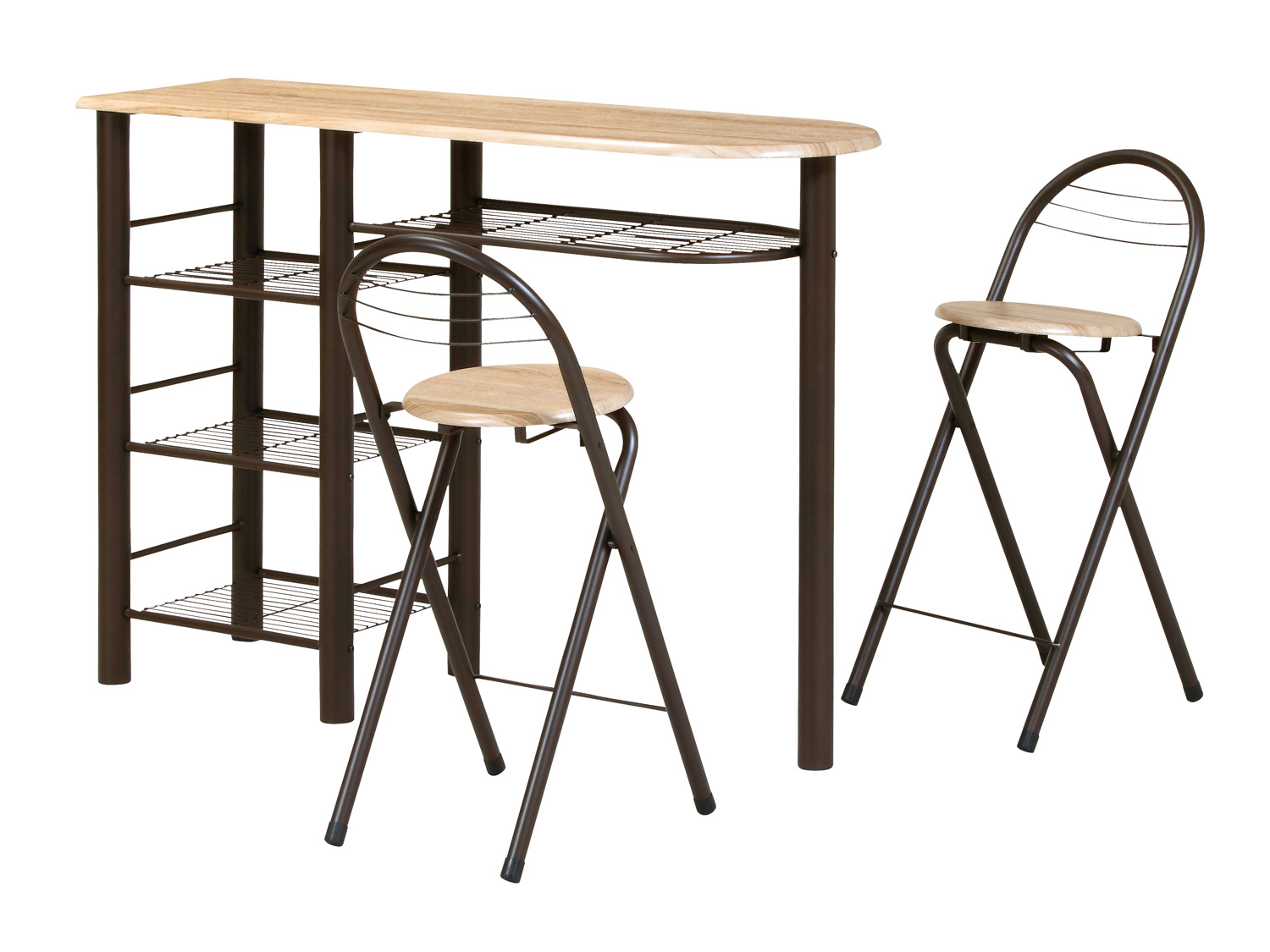 折りたたみ式のハイチェア2脚がセットになった、スタイリッシュなハイテーブル3点セットです。