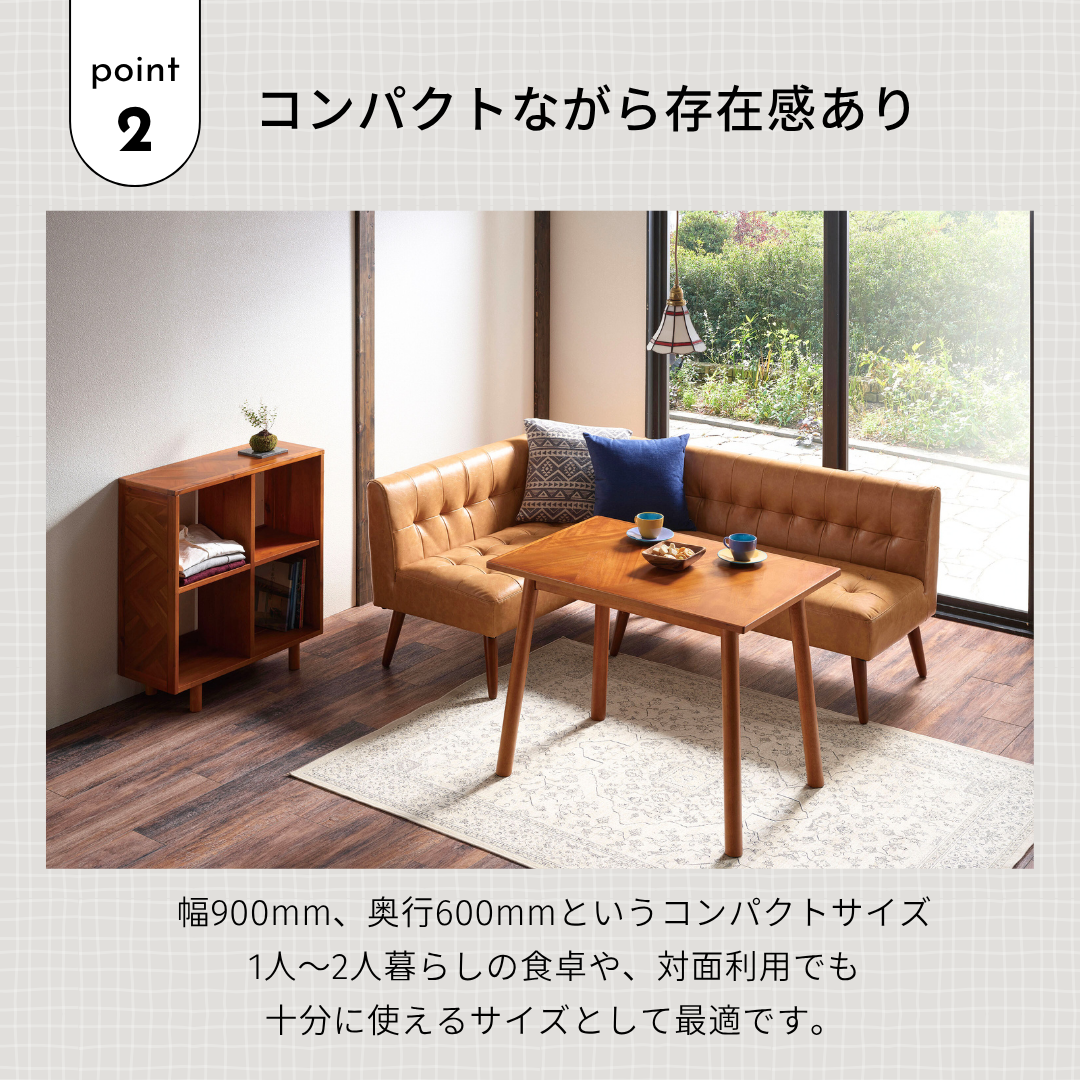 幅90×奥行60cmのコンパクトサイズで、2人暮らしや限られた空間にもぴったり。