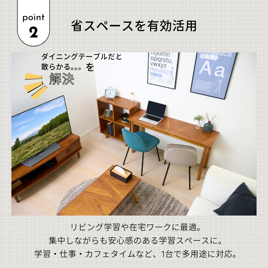 幅130cmのゆったり天板は、在宅ワークやお子さまのリビング学習にも最適。