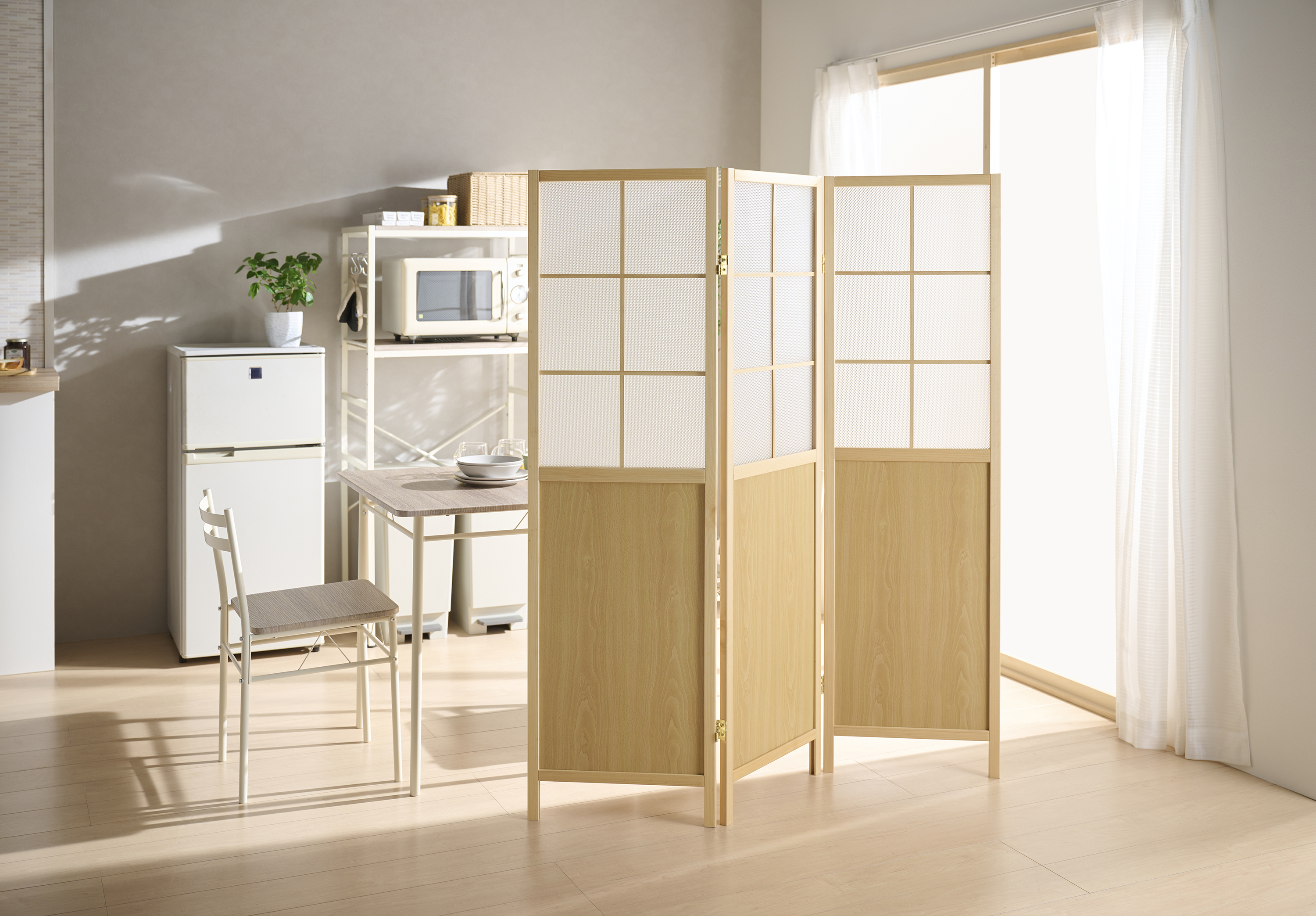 3枚連結で最大幅130.5cm、高さ150cmまで調整でき、パーソナルスペースや目隠しに最適です。