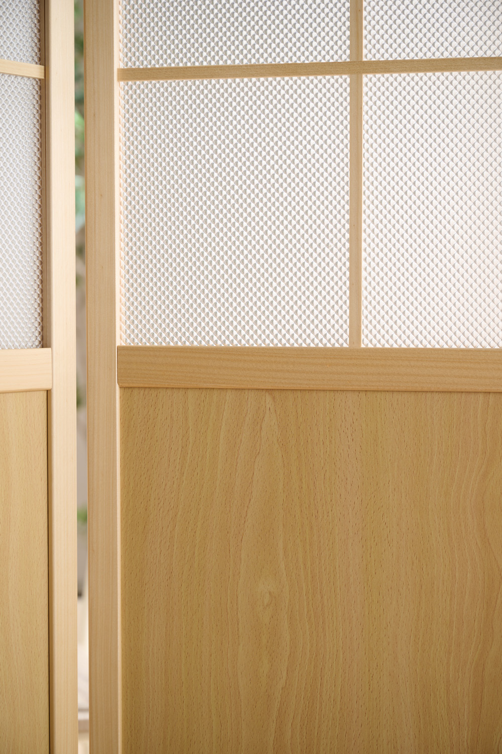 視線を遮りながらも、光を取り込むデザインで圧迫感なく設置可能なパーテーション。
