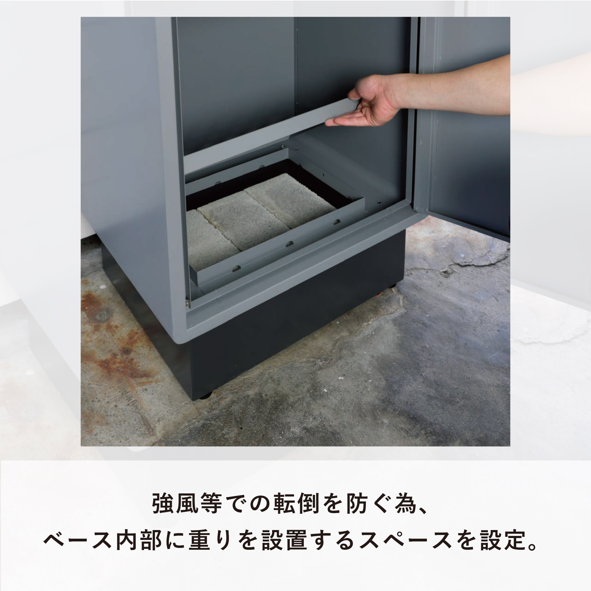 コンパクトながらしっかり収納できるサイズ設計で、屋外設置に最適です。
