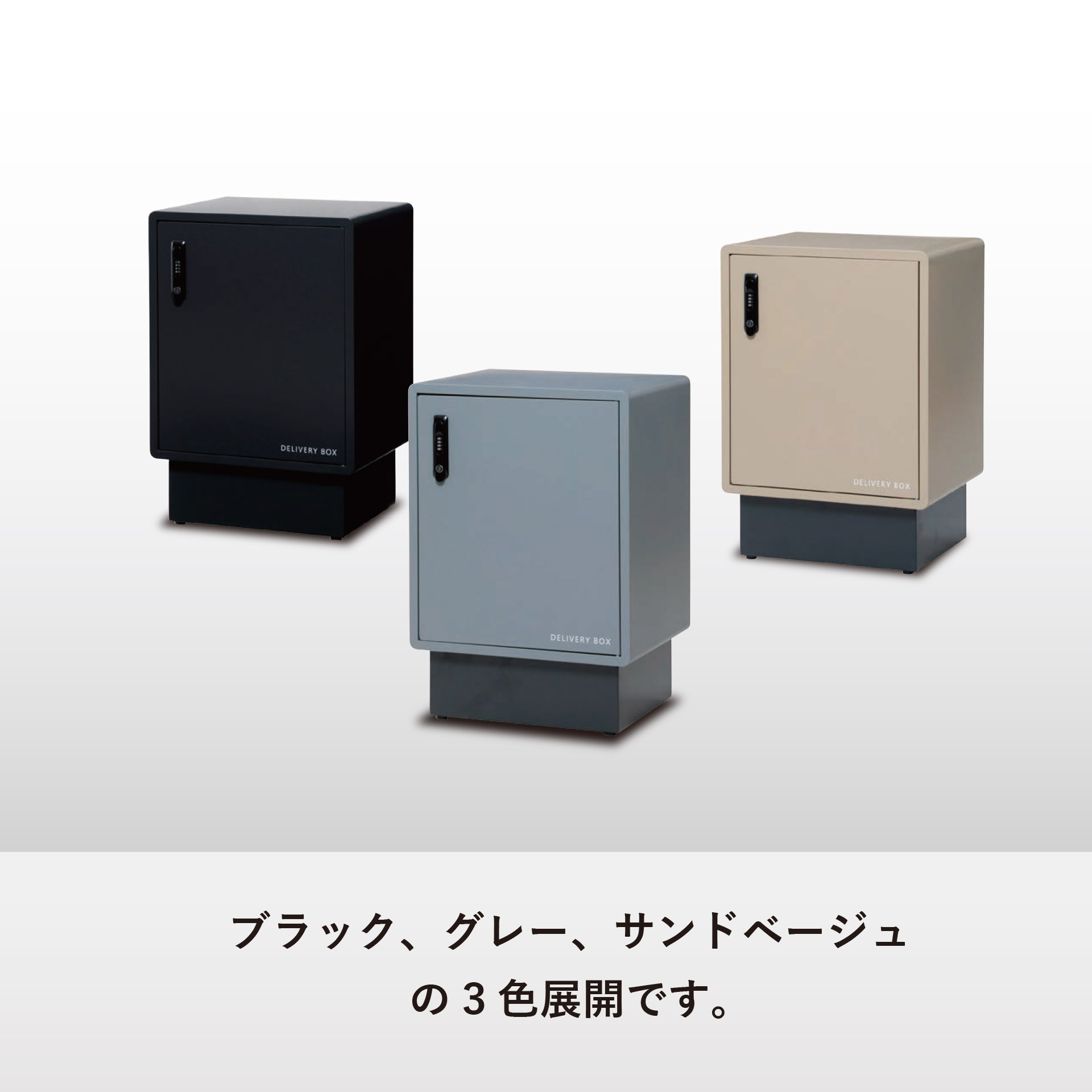 特徴:屋外設置可能、置き配対応、3色展開