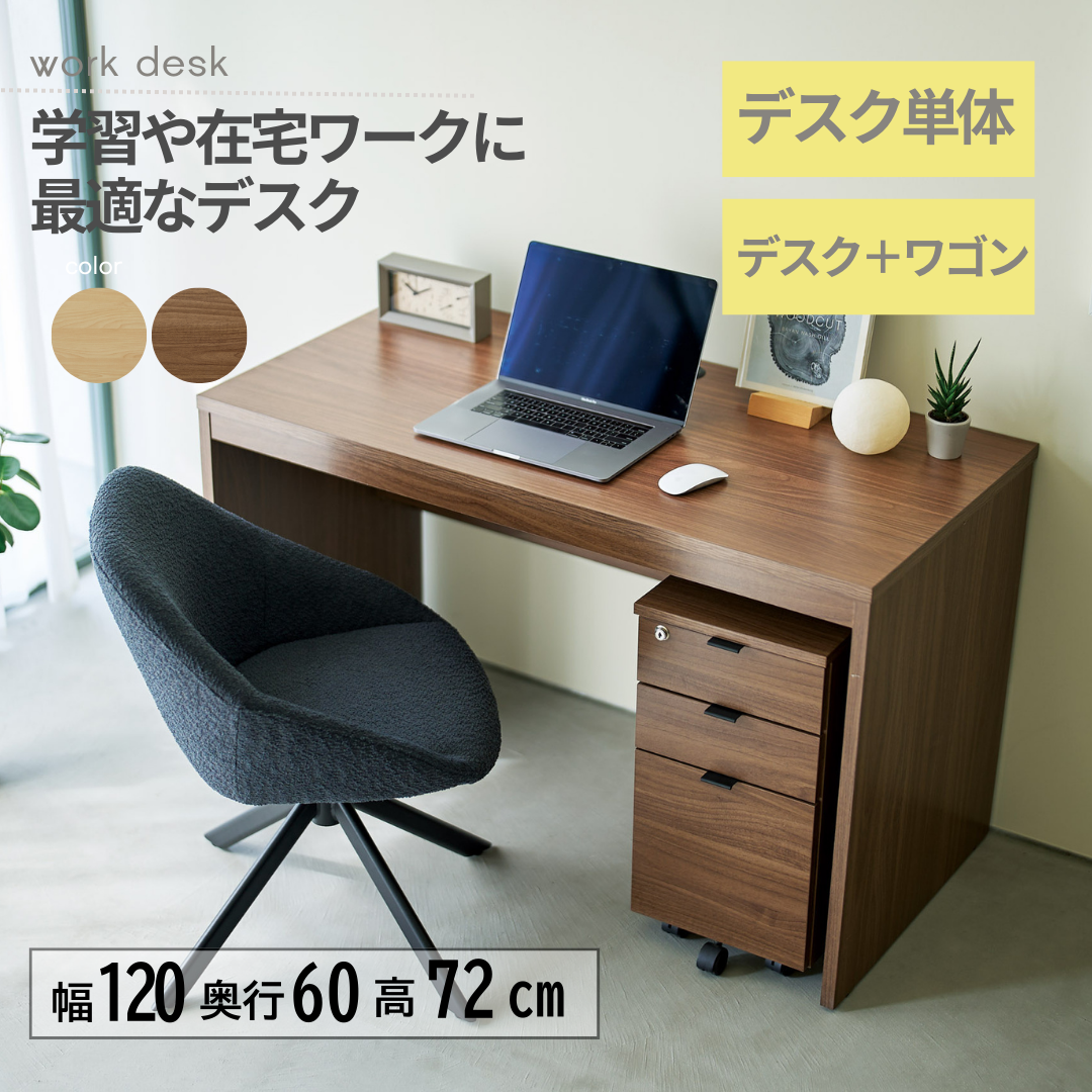 【幅120cm】デスク ワゴンセット デスク単品 学習机 ワークデスク 木目 北欧風 シンプル おしゃれ 在宅ワーク テレワーク 書斎 勉強机 組立簡単 省スペース
