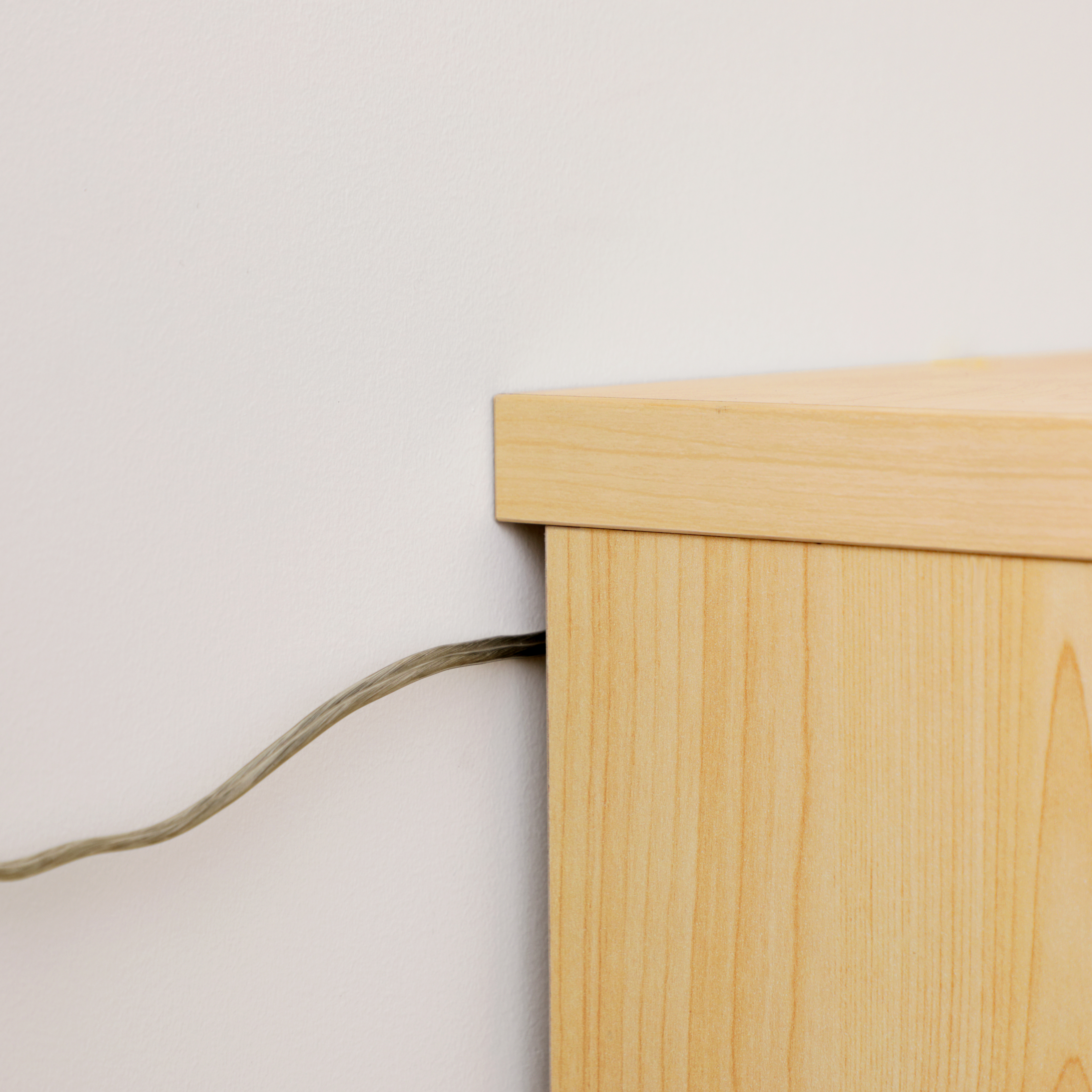 壁付けしたときに巾木と配線コードを横から逃せるように12mmの隙間を設けています。