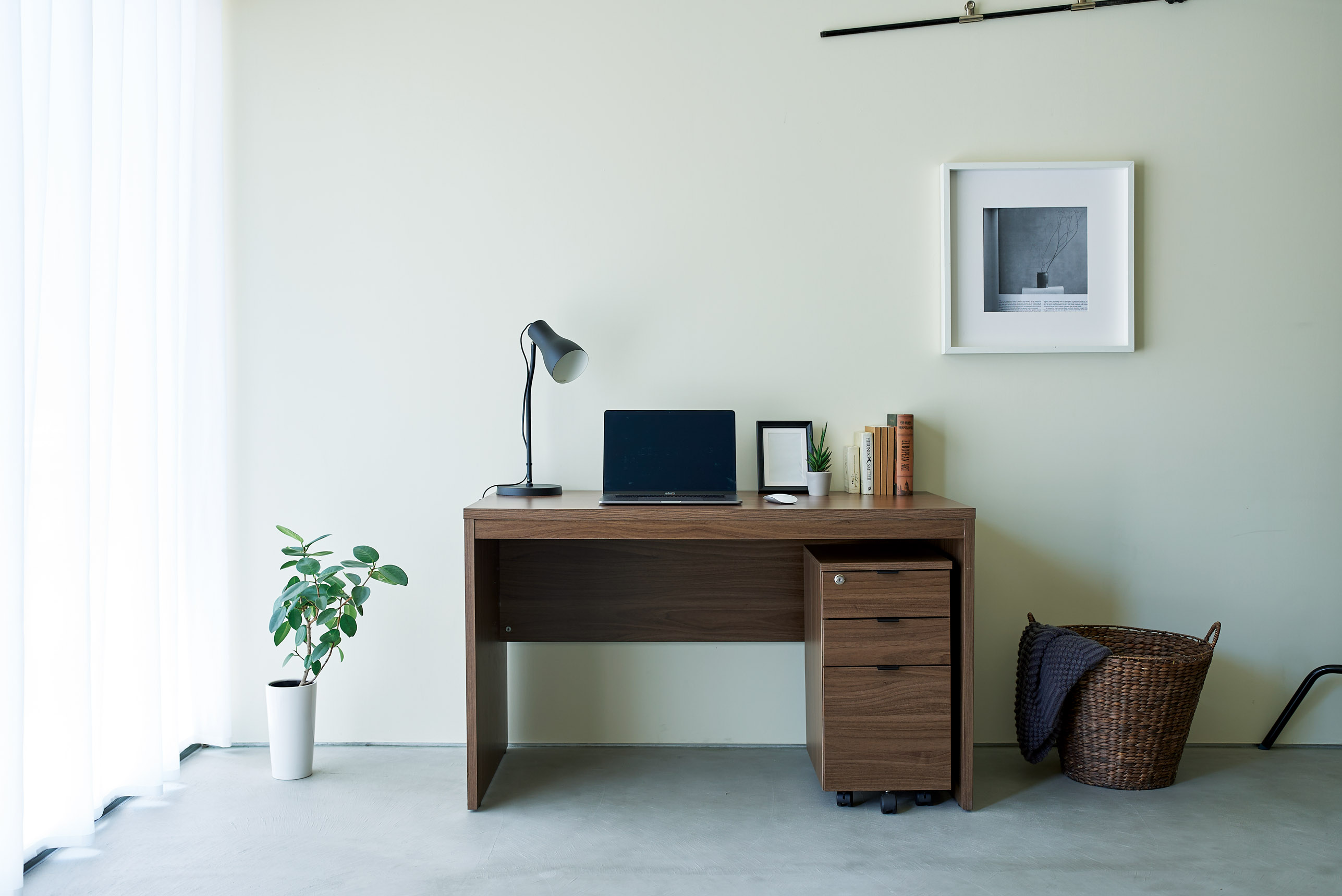 デスク単体でも、収納力のあるワゴンセットでも選べるので、