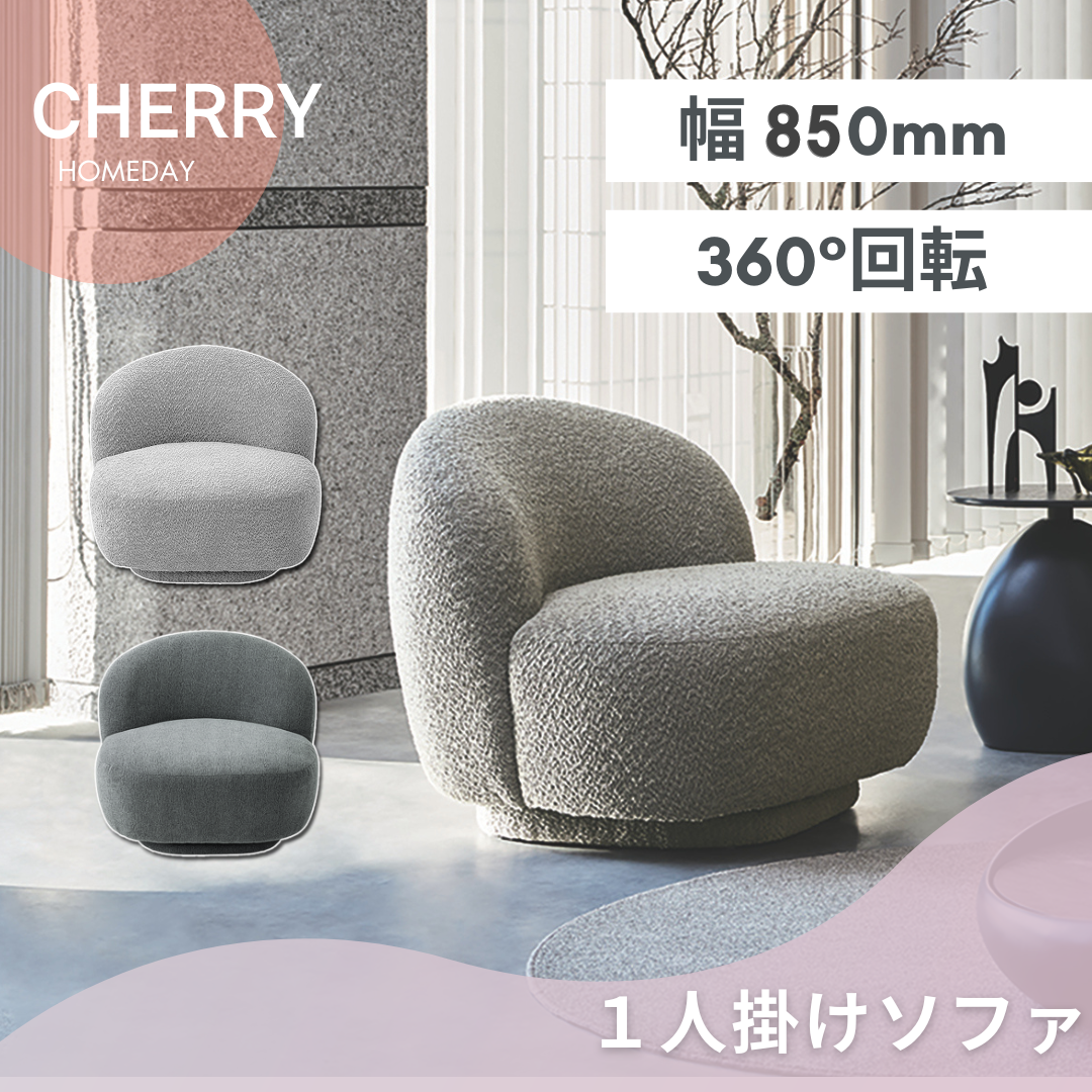CHERRY Homeday sofa ファブリック ソファ 曲線 幅85cm 1人掛け 1.5人掛けゆったり おしゃれ 韓国北欧 ナチュラル モダン グレー ベージュ