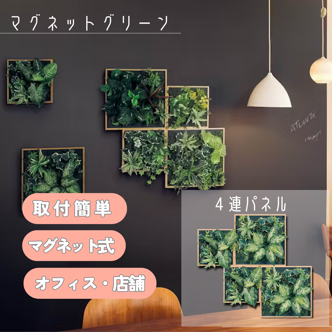 マグネット式グリーン 4連パネル 壁面緑化 フェイクグリーン 人工観葉植物 ウォールパネル オフィス・店舗用 インテリア緑化 簡単取付 オフィス インテリアグリーン 壁 インテリア 店舗装飾 造花 壁掛け おしゃれ 壁面装飾 オフィス緑化 壁面デコレーション