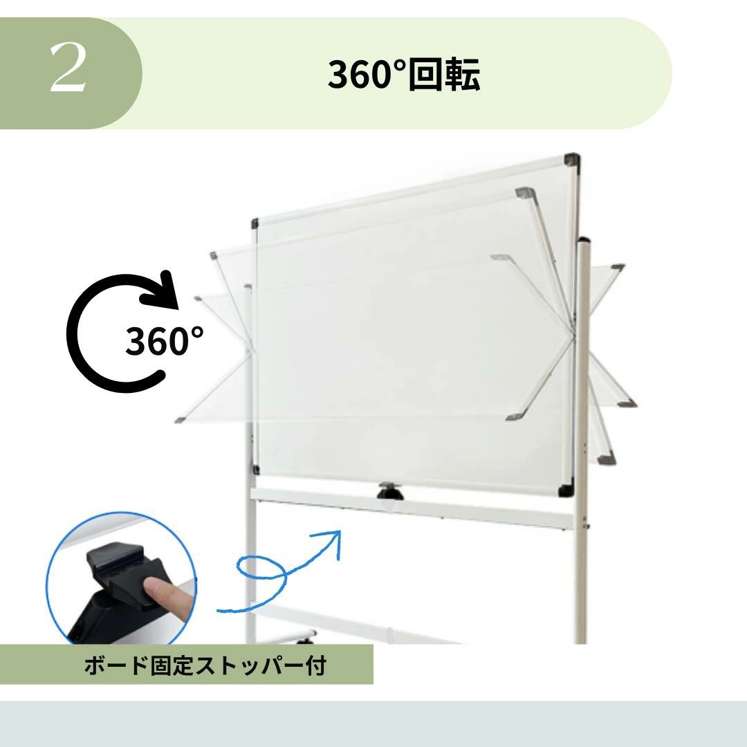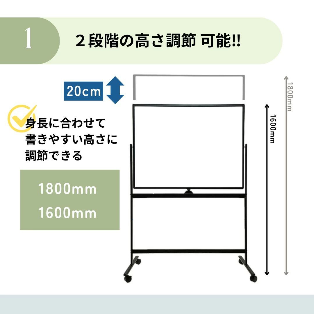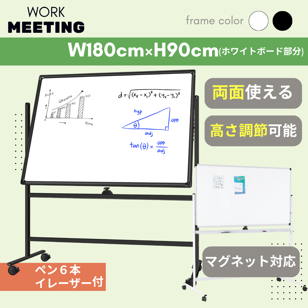 ホワイトボード 両面使用 360°回転可能 高さ調節可能 マグネット対応 幅180×90cm 高さ160cm 高さ180cm ペン付き イレーザー付き オフィス会議 キャスター付 仕切り 塾 学習