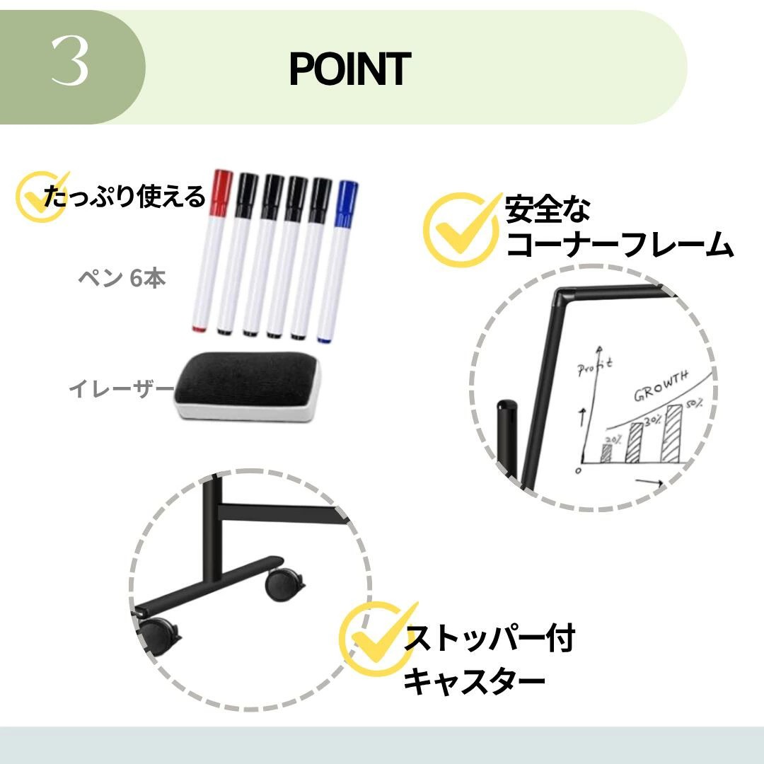 360°回転式/高さ調節可能/キャスター付き/ペン・イレーザー付き