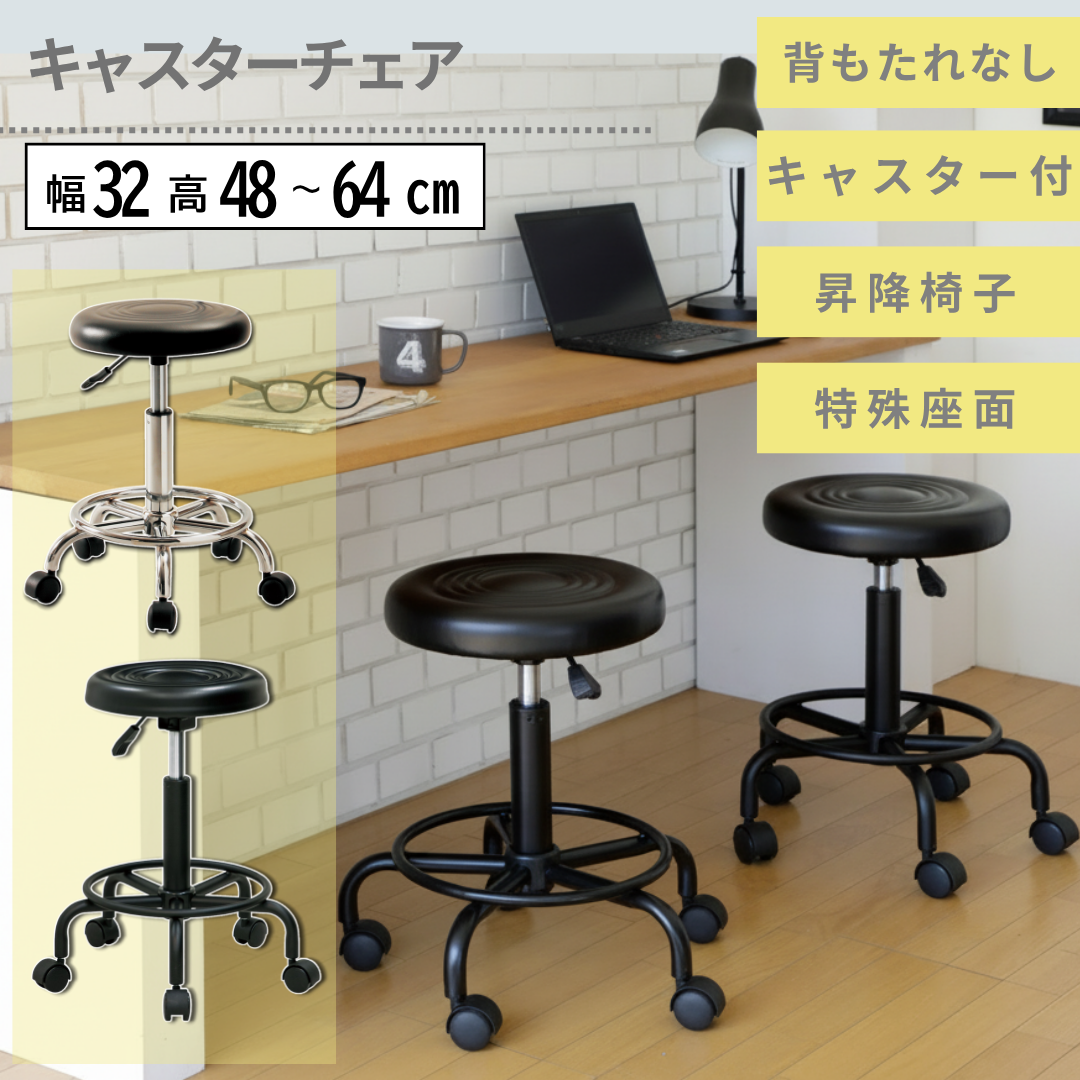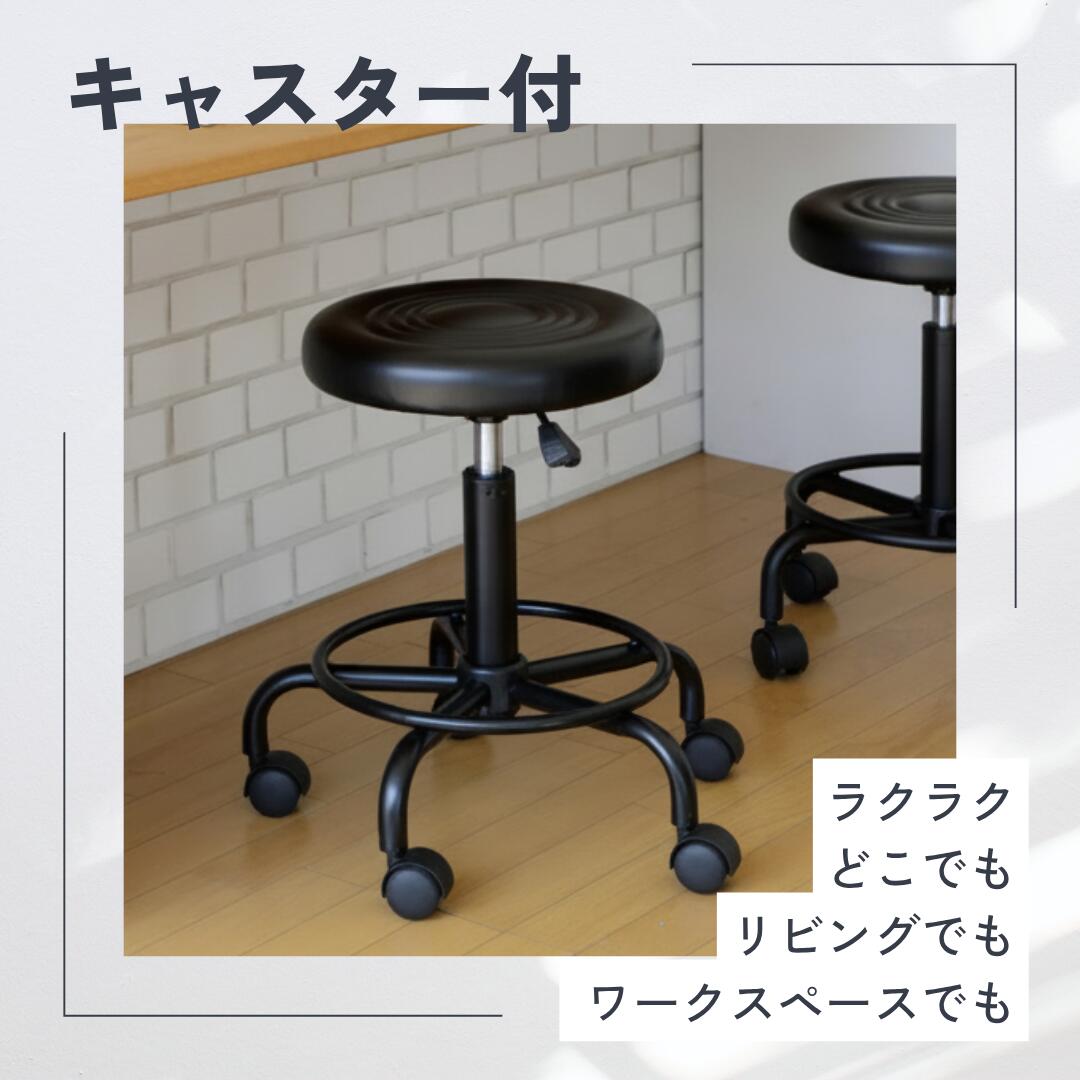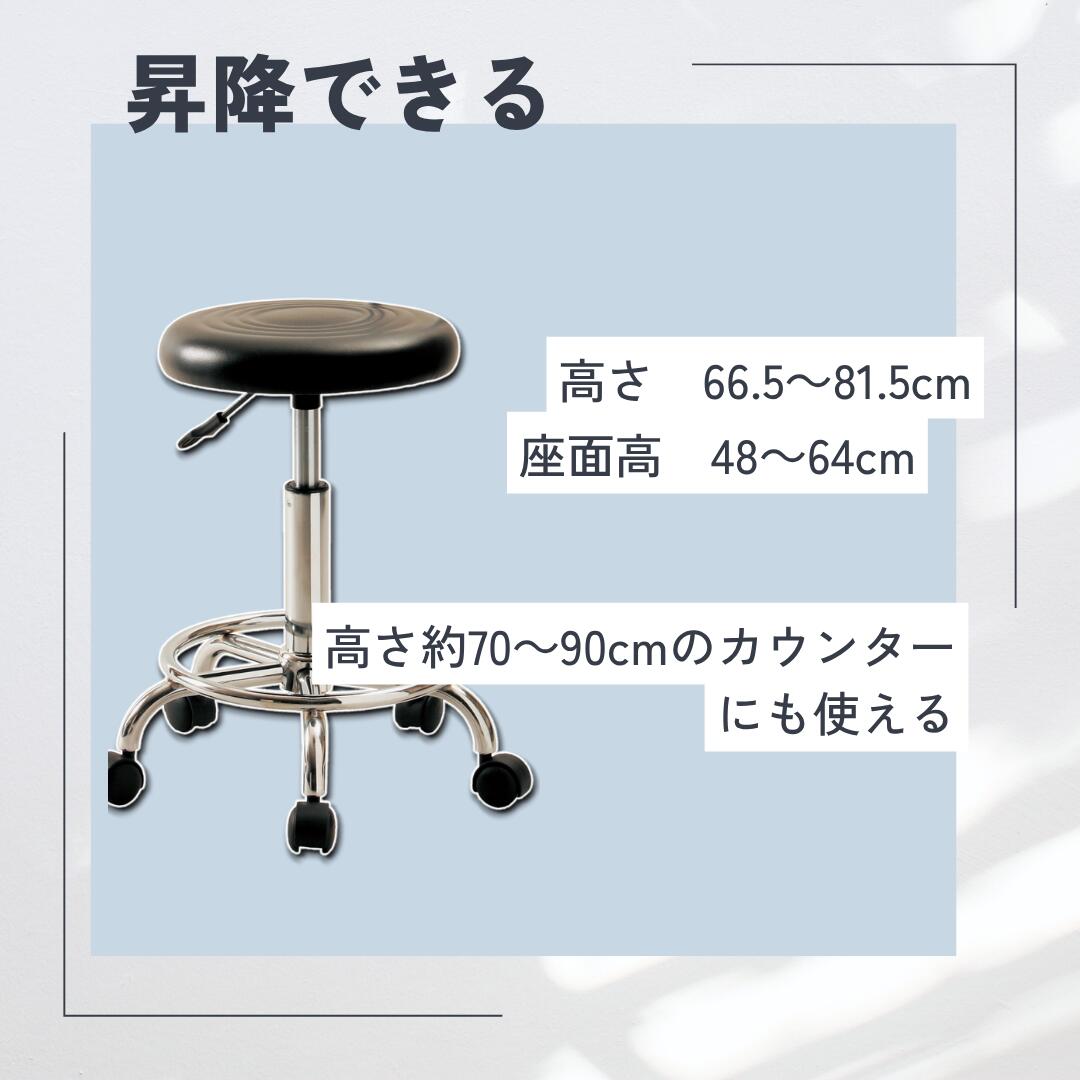 キャスター付き昇降式チェア ブラック 背もたれ付き 丸椅子 カウンターチェア おしゃれ モダン 回転 チェア サロン オフィス 診察室 美容室 ネイル 施術用イス オフィス 在宅ワーク 幅32 高さ48~64cm