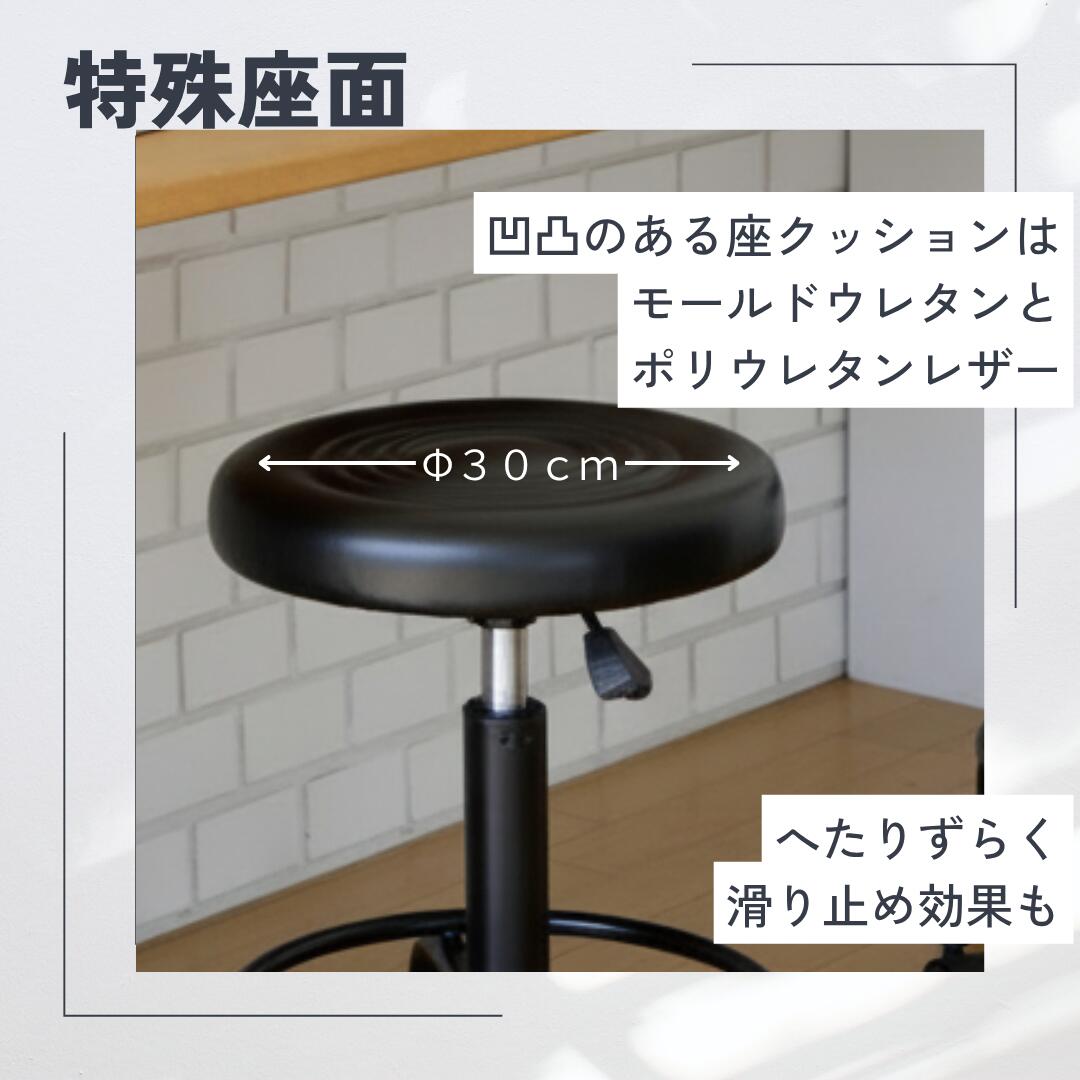 快適な座り心地と機能性を兼ね備えた、キャスター付き昇降式スツール。