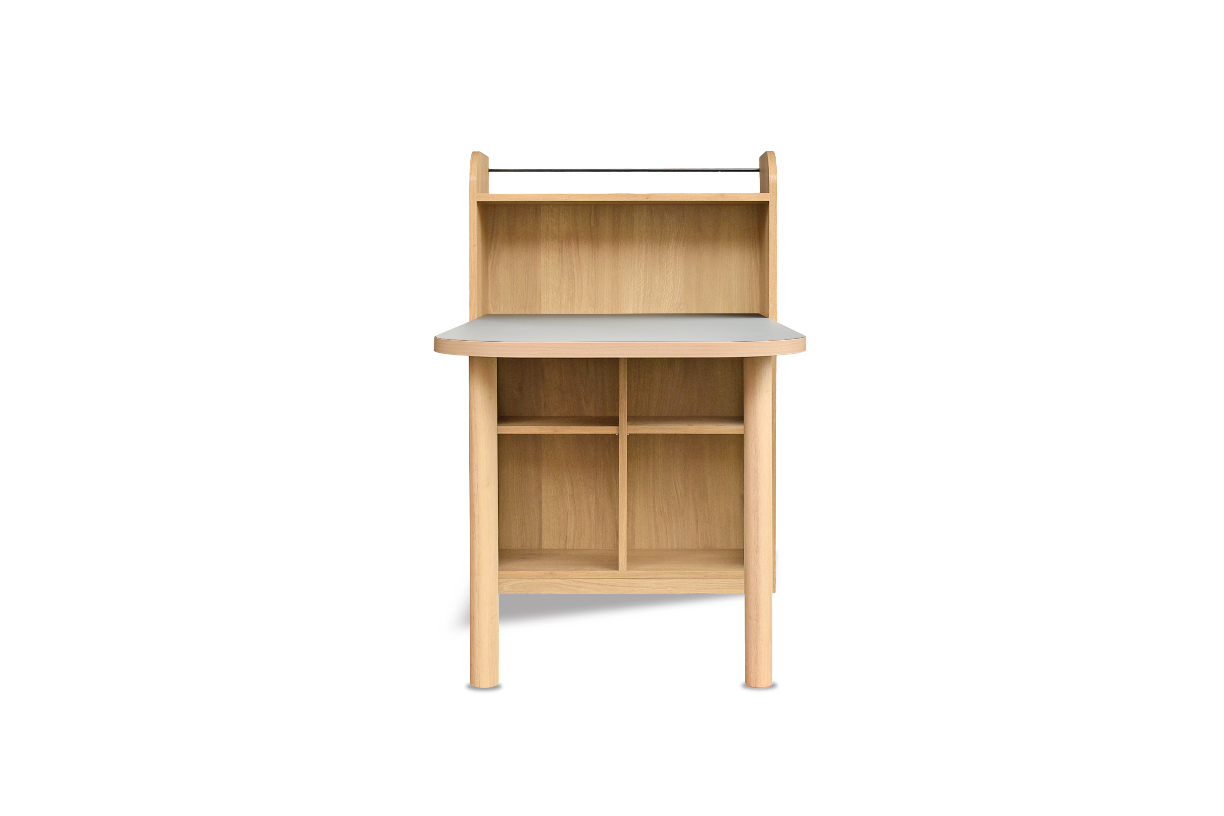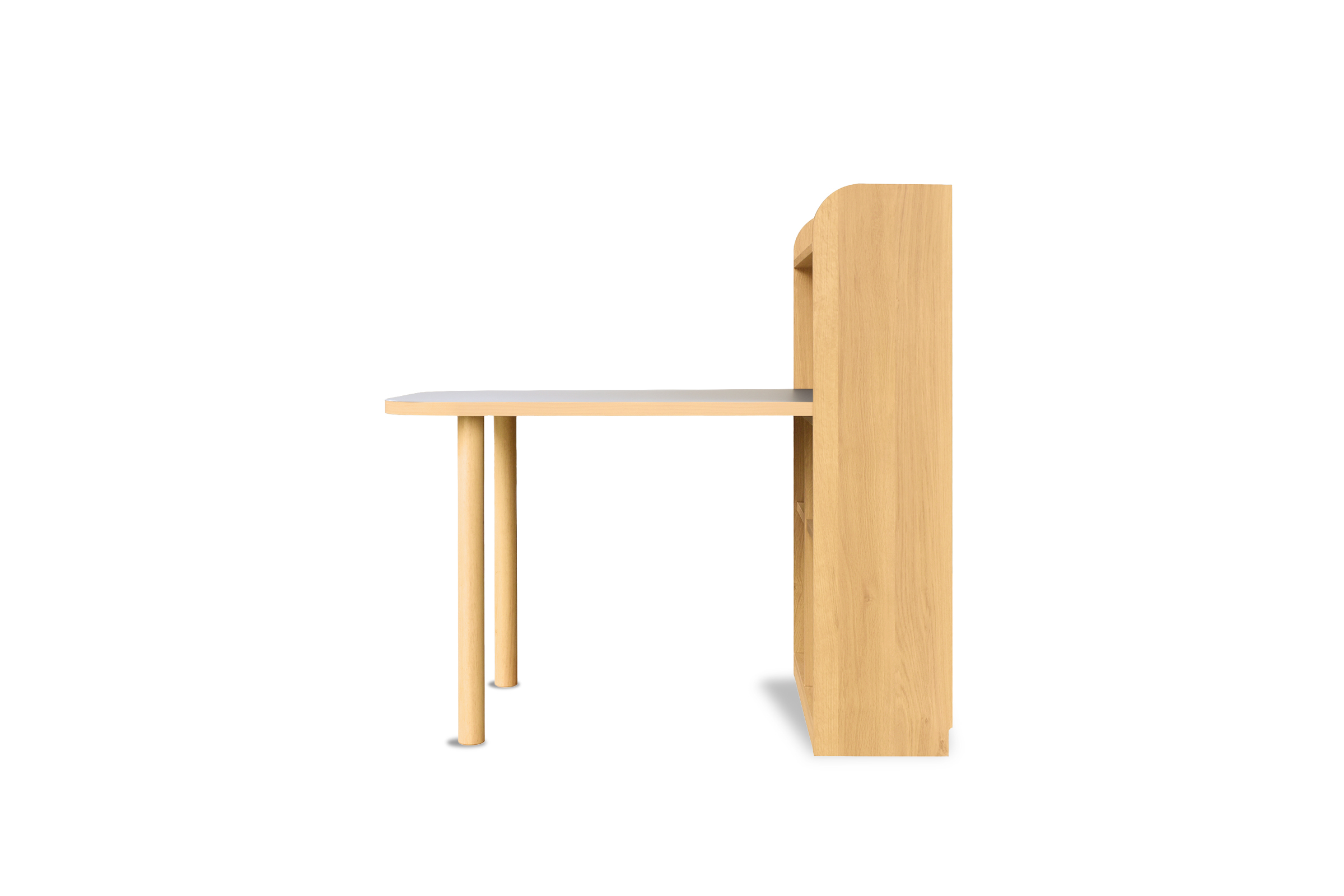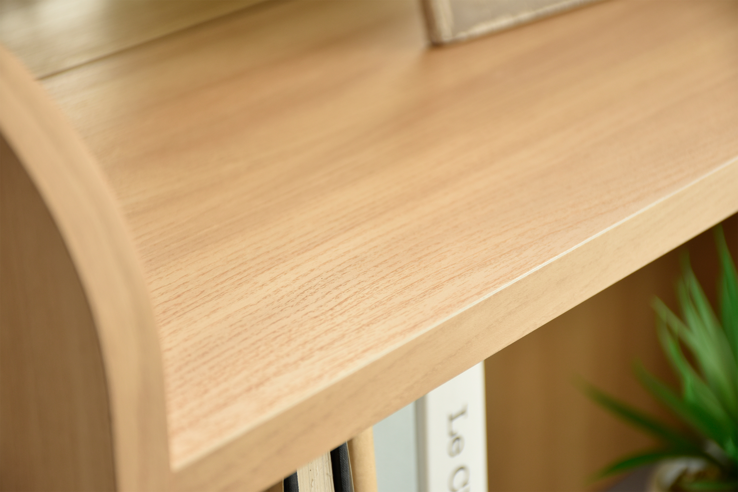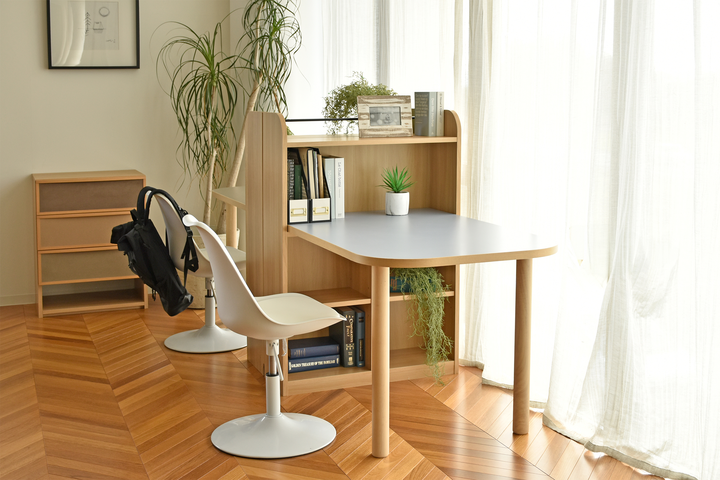 メラミン天板とプリントシートの本体に、ラバーウッドの天然木脚を組み合わせた丈夫で美しいデザイン。