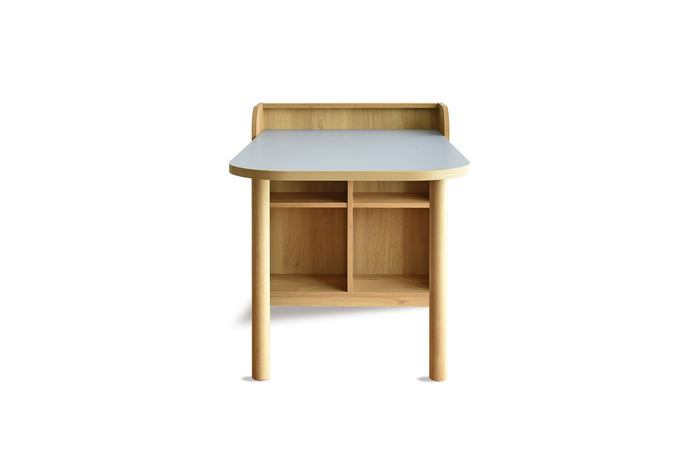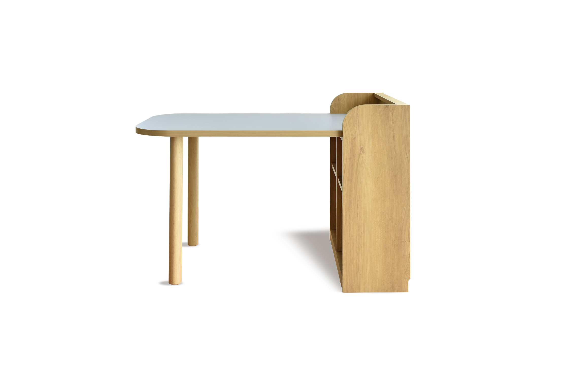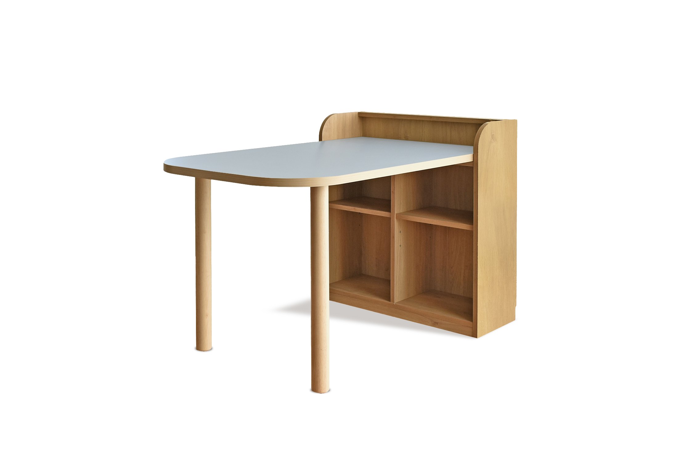 高さ850mmでテーブル感覚で使用でき、メラミン天板とプリントシートの本体、ラバーウッドの天然木脚を組み合わせた丈夫で上品なデザインです。