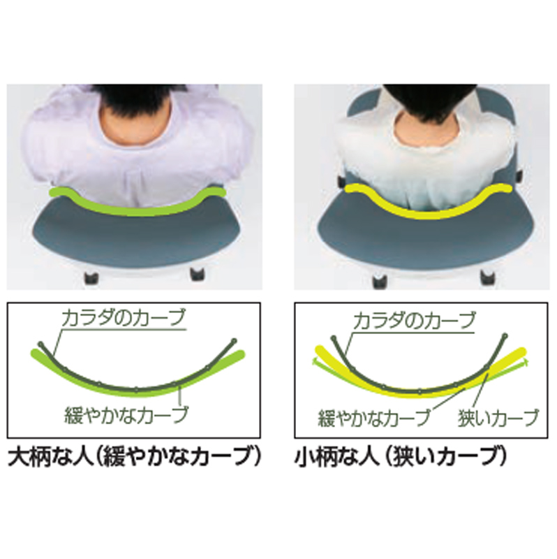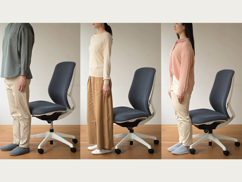 そこでオカムラは、この結果を基に背もたれのカーブを簡単に調節ができる「バックカーブアジャスト機構」を開発。