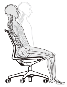 もたれによりかかると背が後方に倒れます。背もたれの回転ポイントを前方に設定し、ロッキング時の背もたれと体のズレを極力解消し、快適性を追求しました。