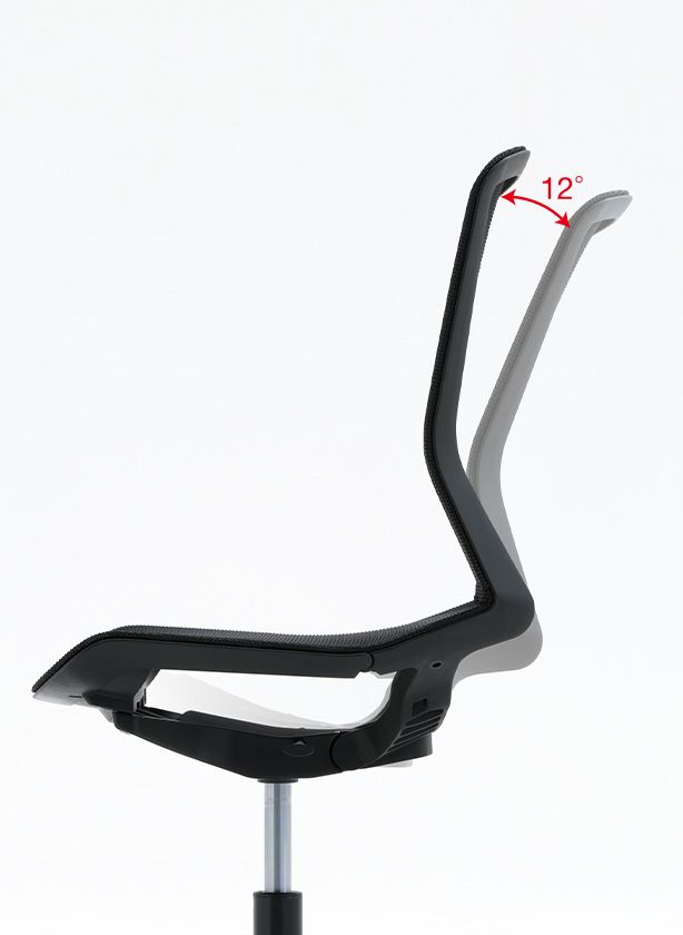 リクライニング反力やチルト範囲を適切に設定し、調整レスのシンプルな機構を実現しました。オカムラ独自の機構である