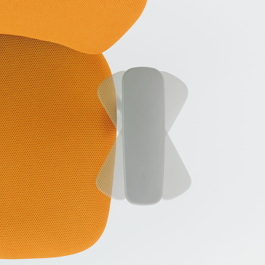 肘パッド部は、上下、角度の調節が可能です。上下は100㎜(20㎜ピッチ・6段階)、角度は60°(内側30°・外側30°)可動します。