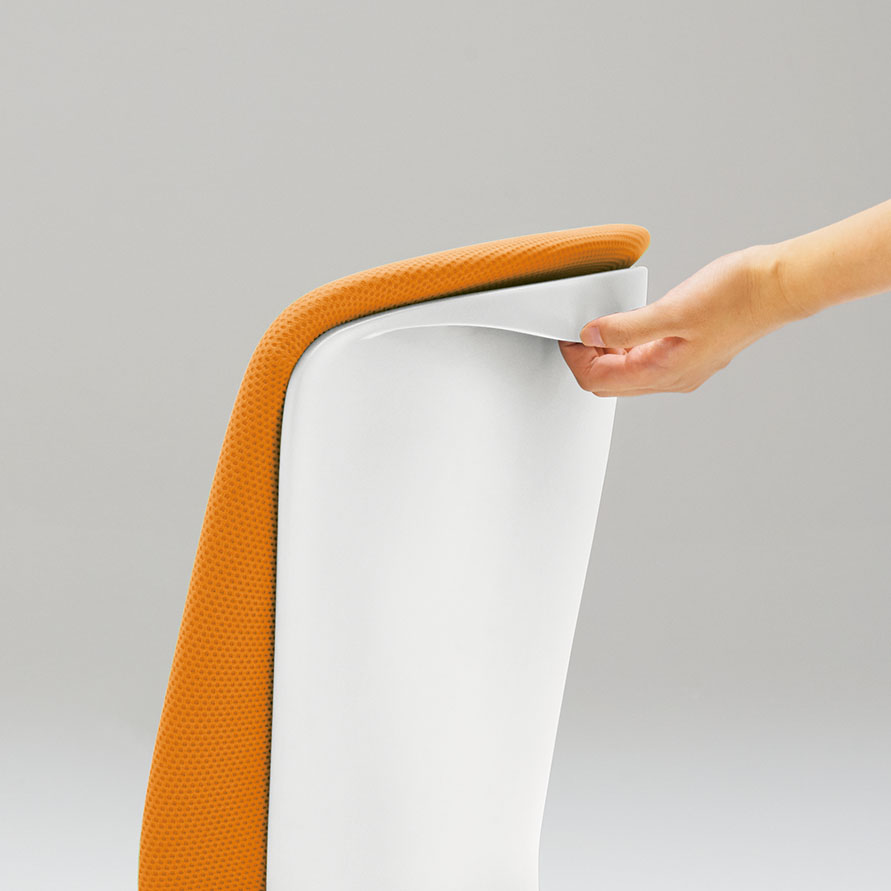 座る時に椅子を引出しやすいように、背のアウターシェルに手掛けを設けました。