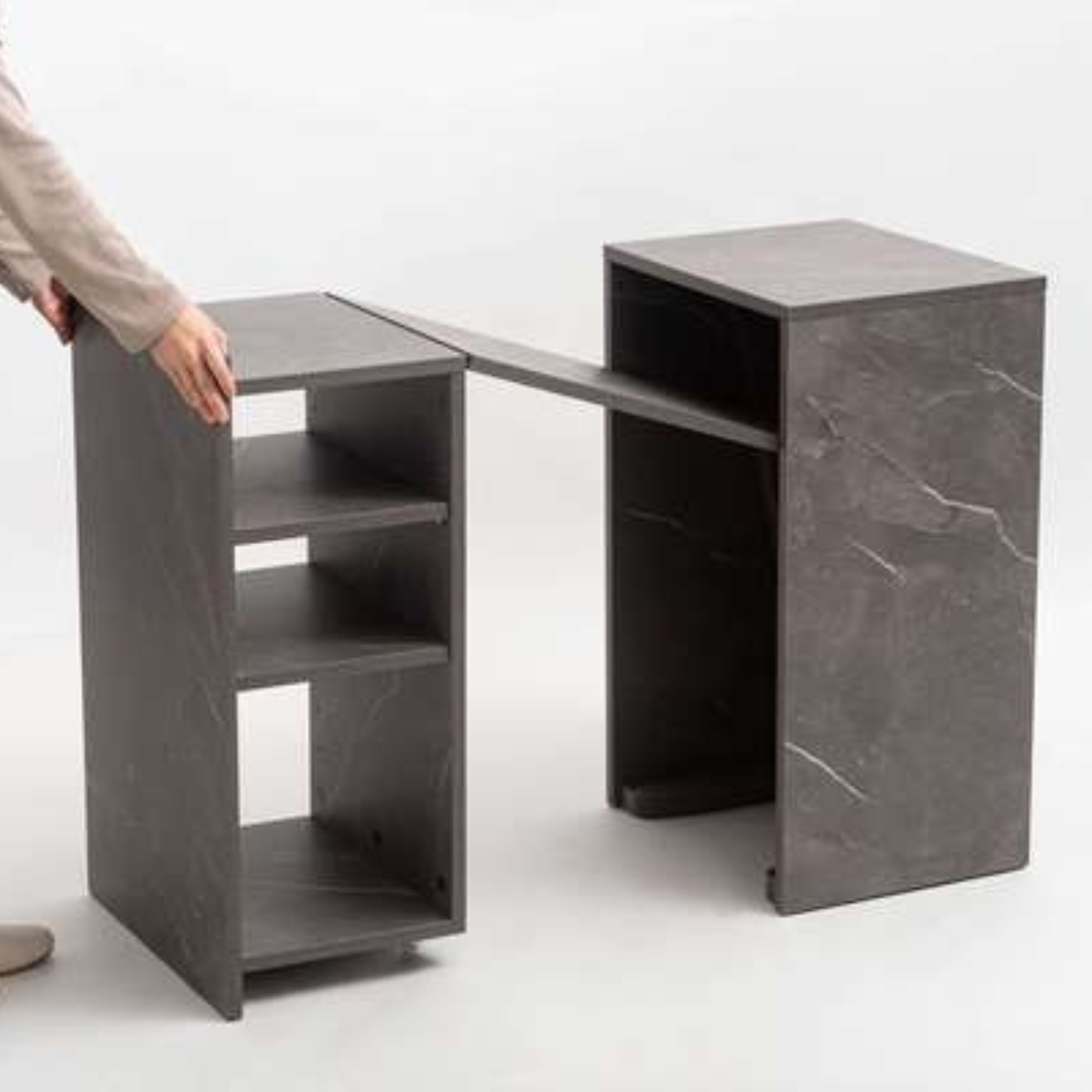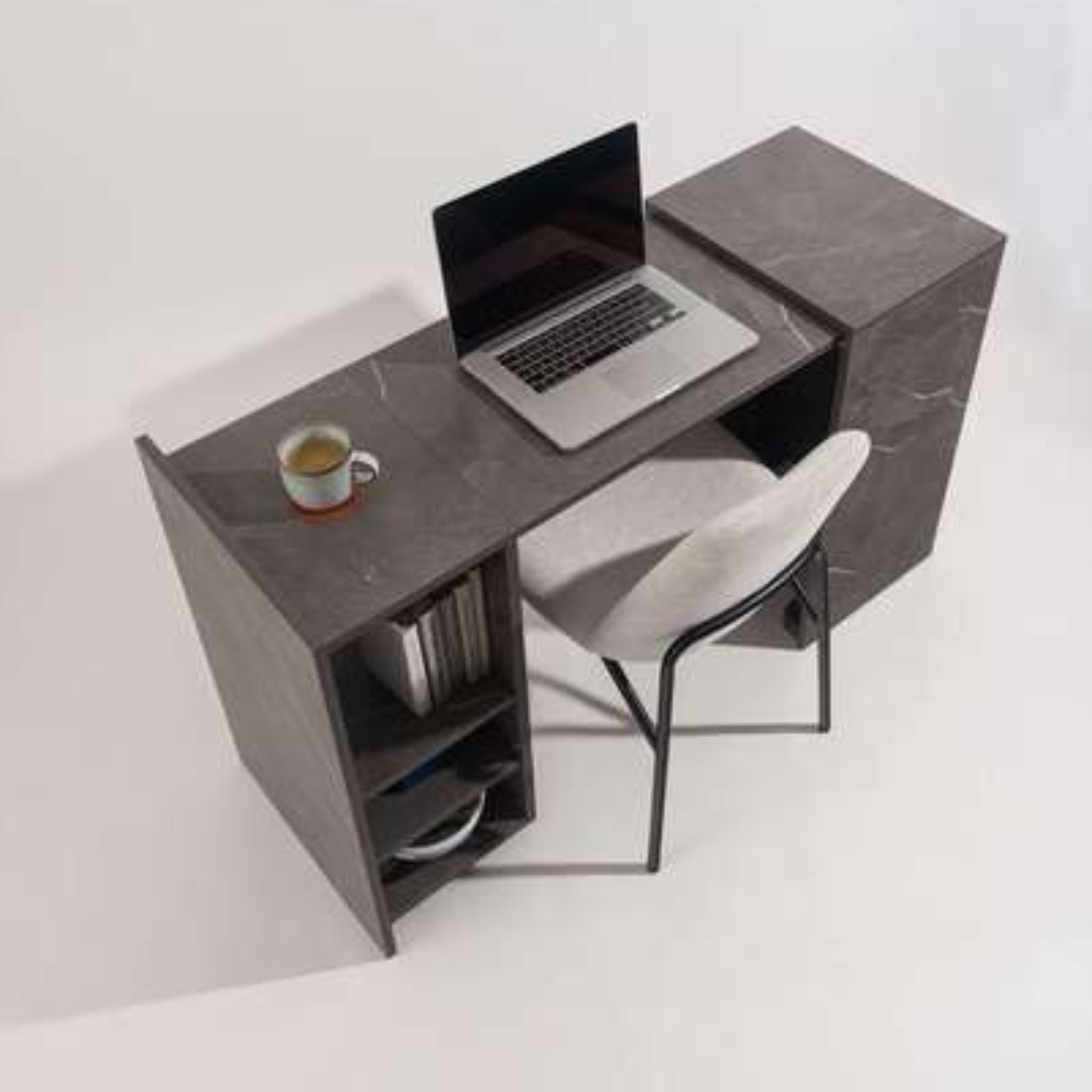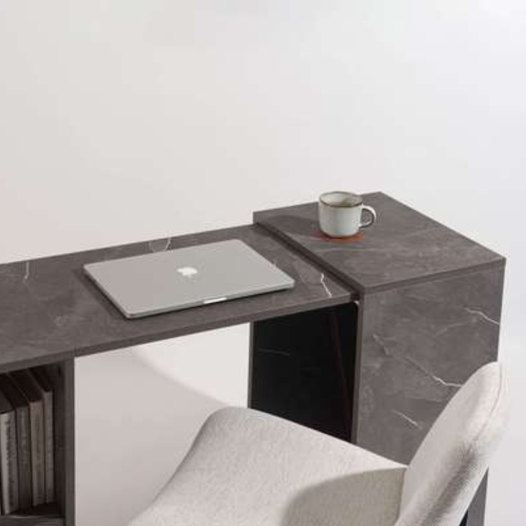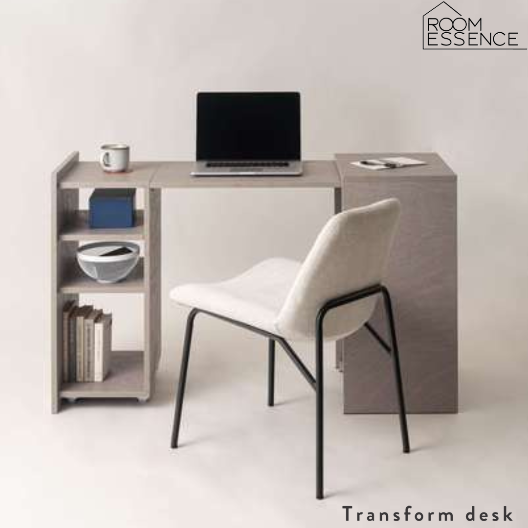 トランスフォームデスク, 変形デスク, 折りたたみデスク, デスク, 机, テーブル, 省スペース, コンパクト, 収納付きデスク, 可動棚, 天板ロック, 石目調, 大理石調, モダン, おしゃれ, 在宅ワーク, ワークデスク