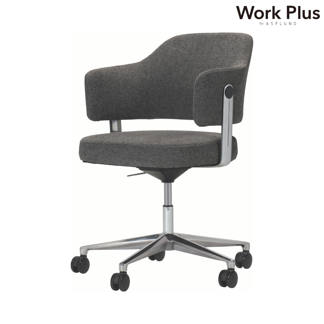 ノグ キャスター チェアは、落ち着いたファブリックとアルミフレームを組み合わせた、洗練されたデザインチェア。
