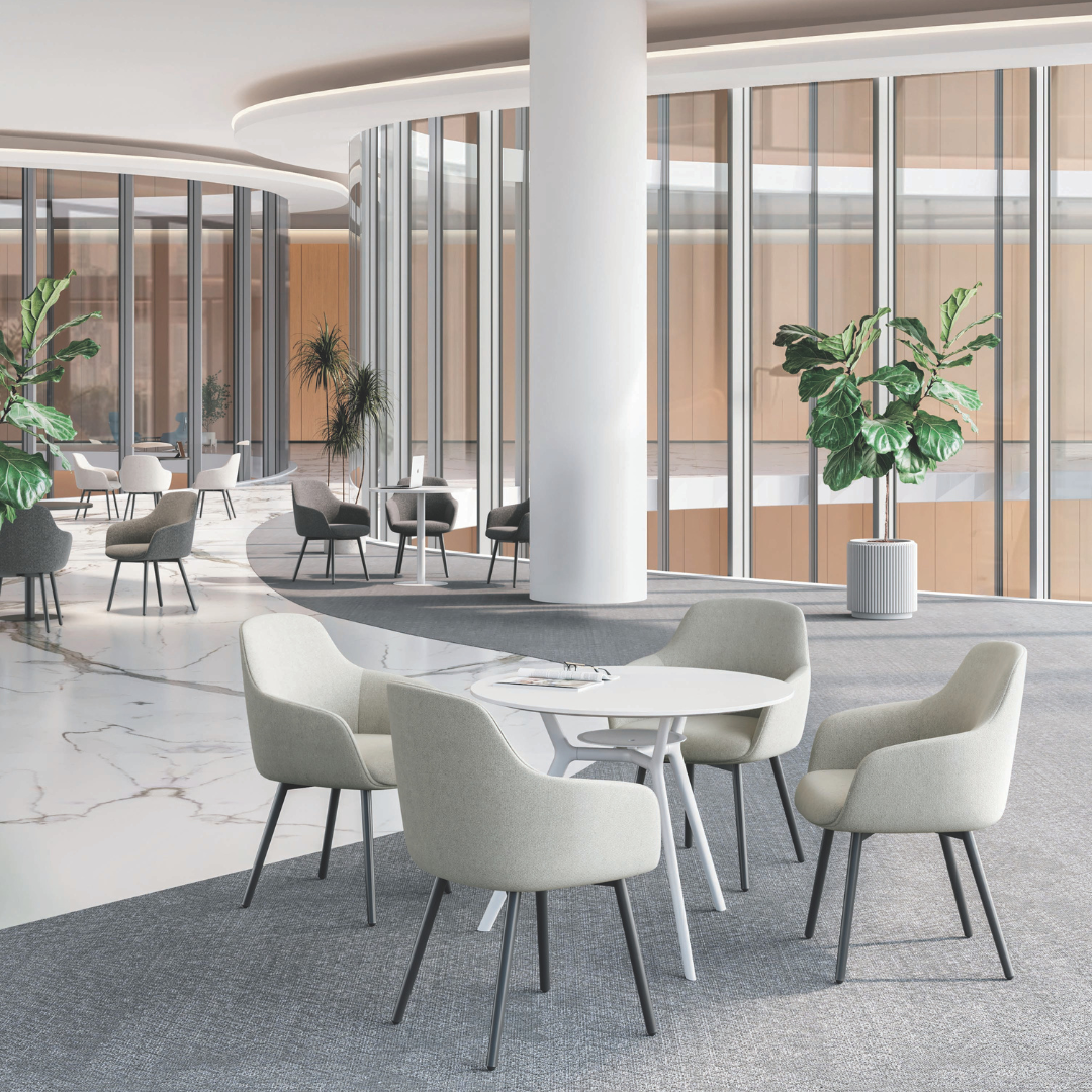 ハグル アーム チェアは、短〜中時間のデスクワークやミーティング・来客対応に最適。