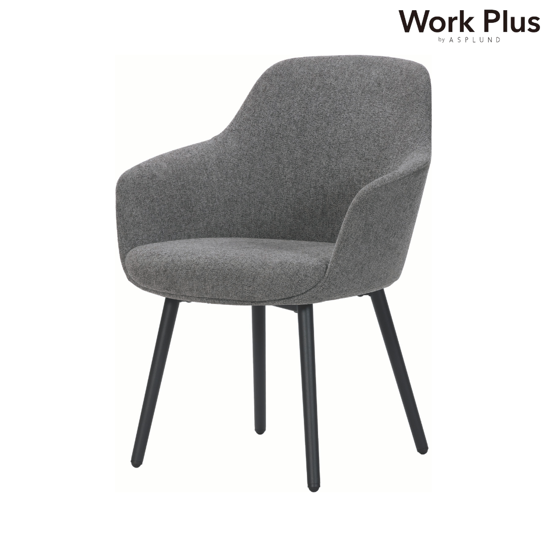 ファブリック張りの柔らかな質感と、スチール脚の安定感を組み合わせ、オフィスや書斎、ミーティングスペースにも違和感なく設置可能。