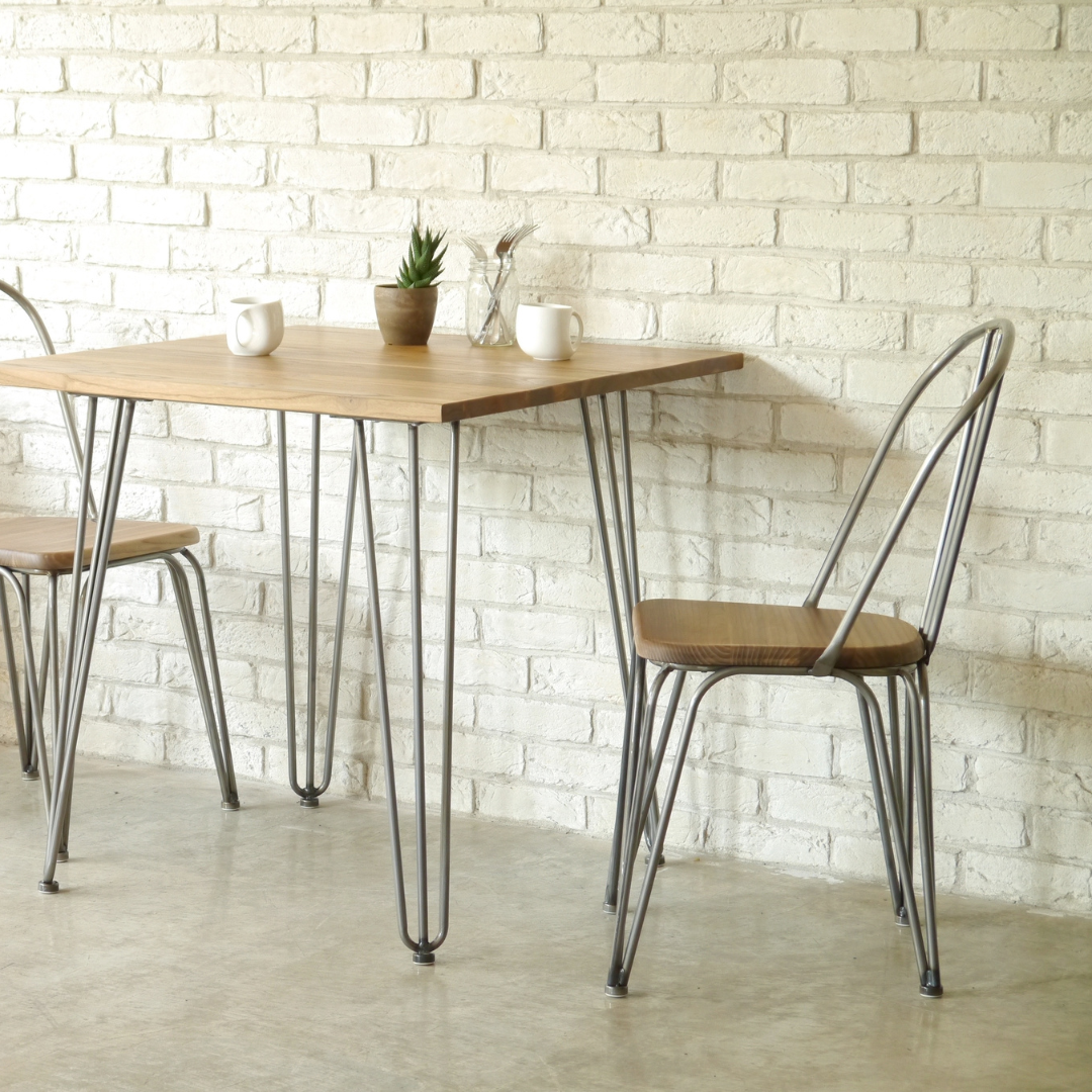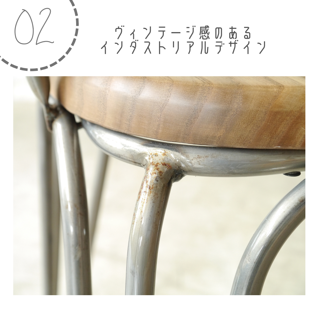 スチールフレームのシャープなラインと、エルム材(ニレ材)の温かみある座面が調和し、インダストリアルテイストを程よく取り入れたデザインです。