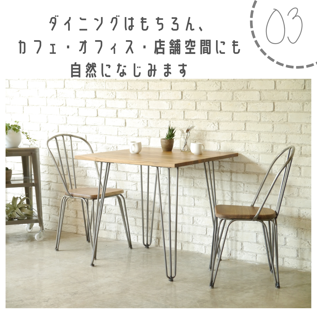 カフェや店舗では、テーブルの素材を選ばず合わせやすく、