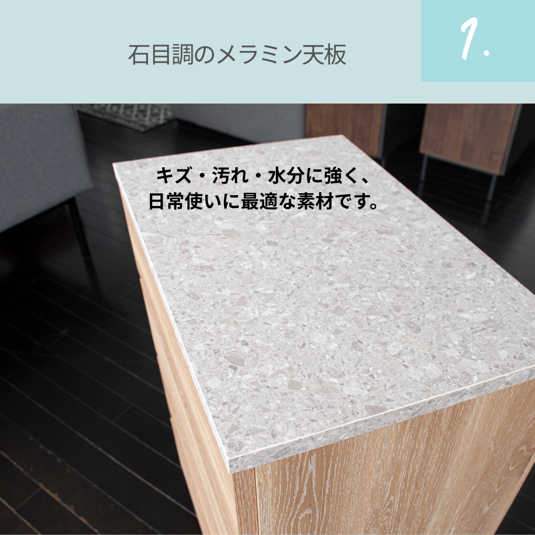引き出しは開閉しやすく、日常使いのしやすさにも配慮しています。