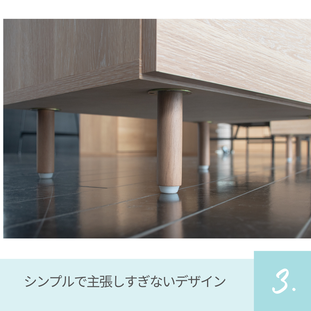 シンプルで落ち着いたデザインは、住宅用としてはもちろん、オフィスやホテル客室、受付などの収納家具としてもおすすめ。