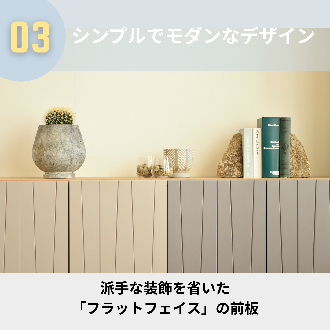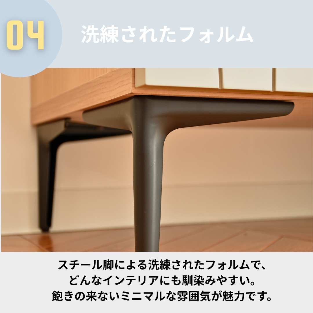 フラットフェイスの前板とスチール脚による軽やかな佇まいで、