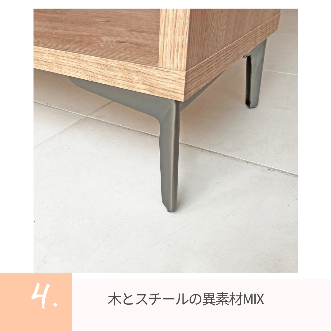 スチール脚の無骨さを組み合わせた、GARTらしい和モダンシェルフ。