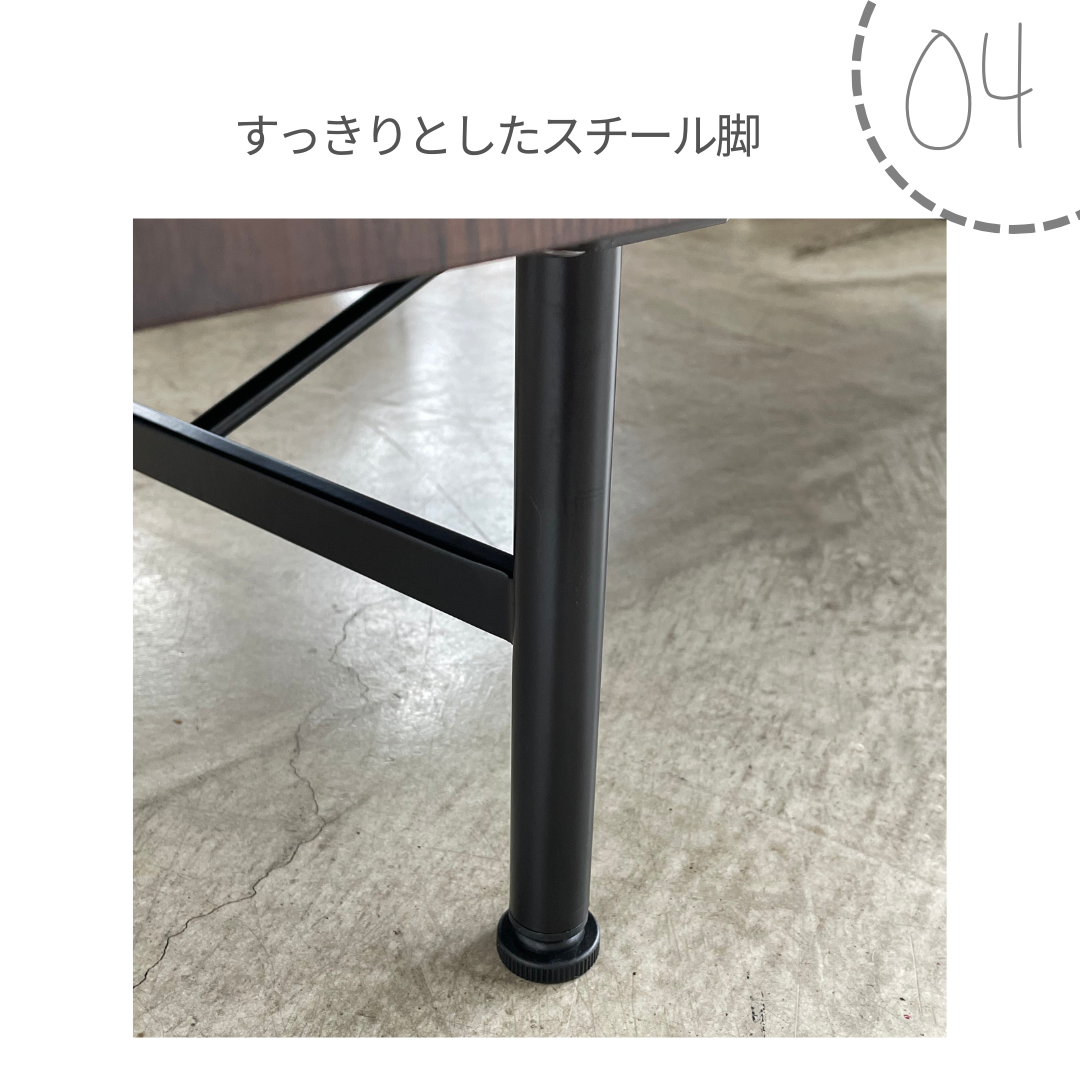 脚部にはスチールを採用し、全体を引き締めたモダンな佇まいに。