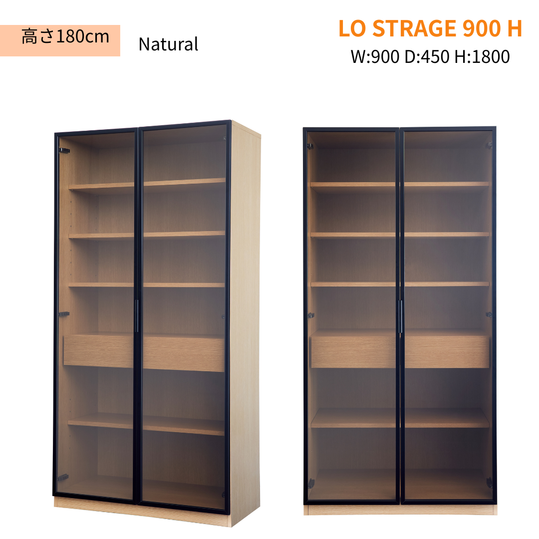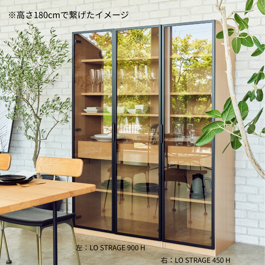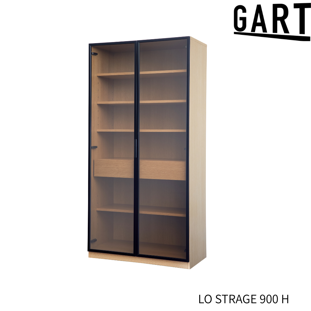 【GART ガルト】LO STRAGE 900 M / 900 H ストレージ キャビネット 幅90cm 高さ120cm 高さ180cm ワイド収納 ガラス扉 リビング 書斎 ワークスペース オフィス 収納家具