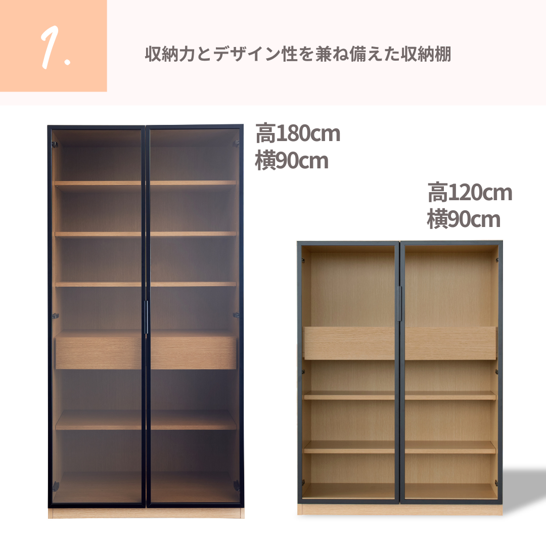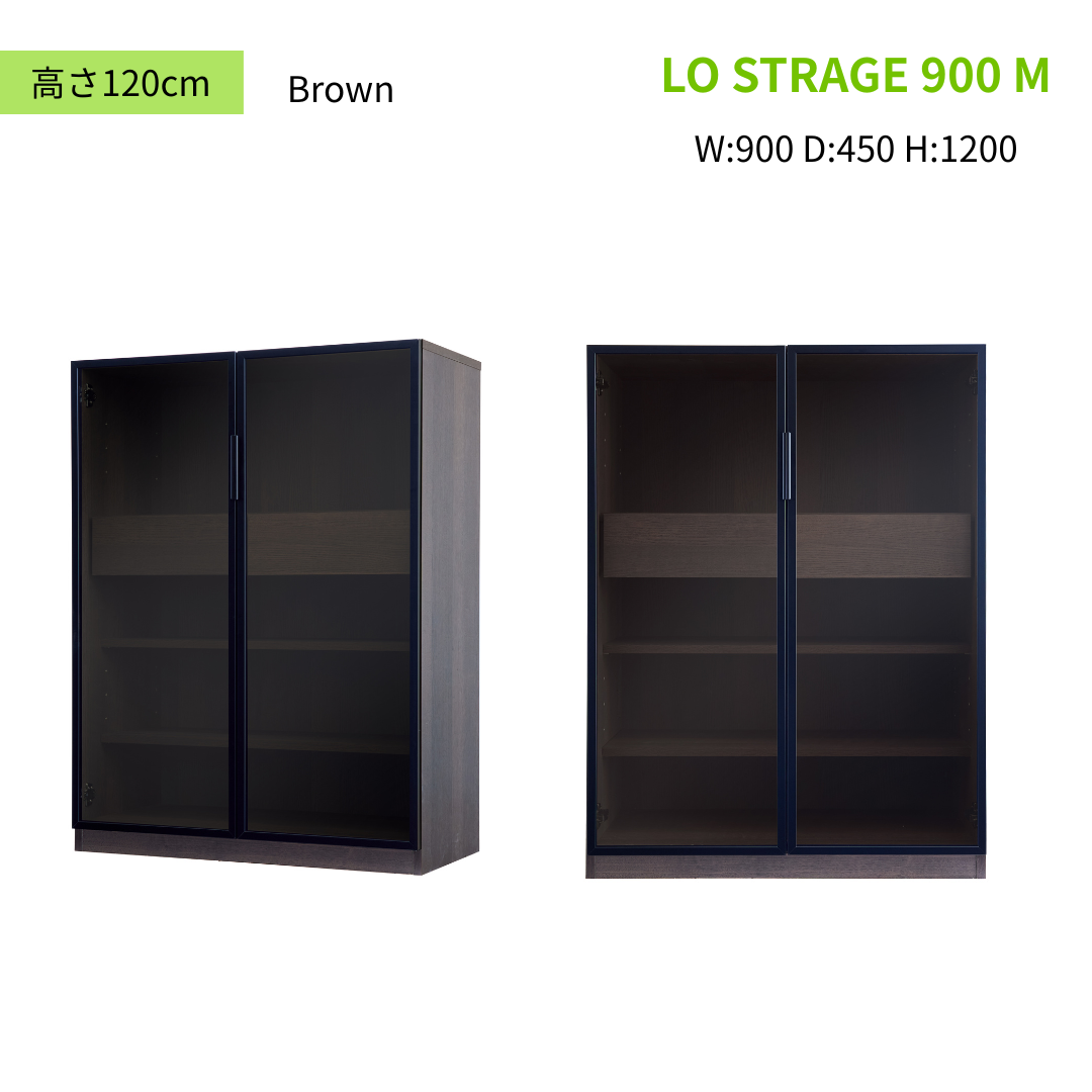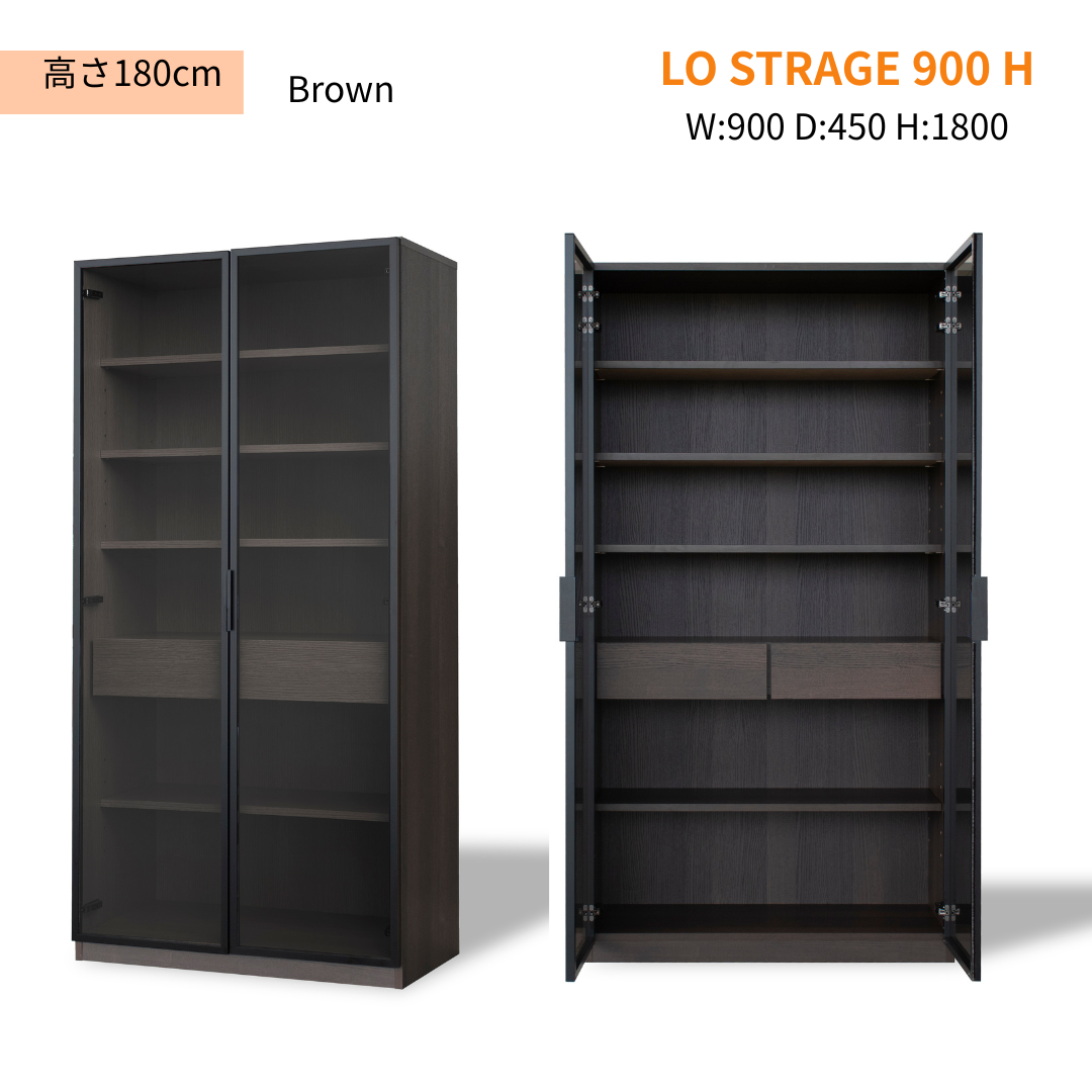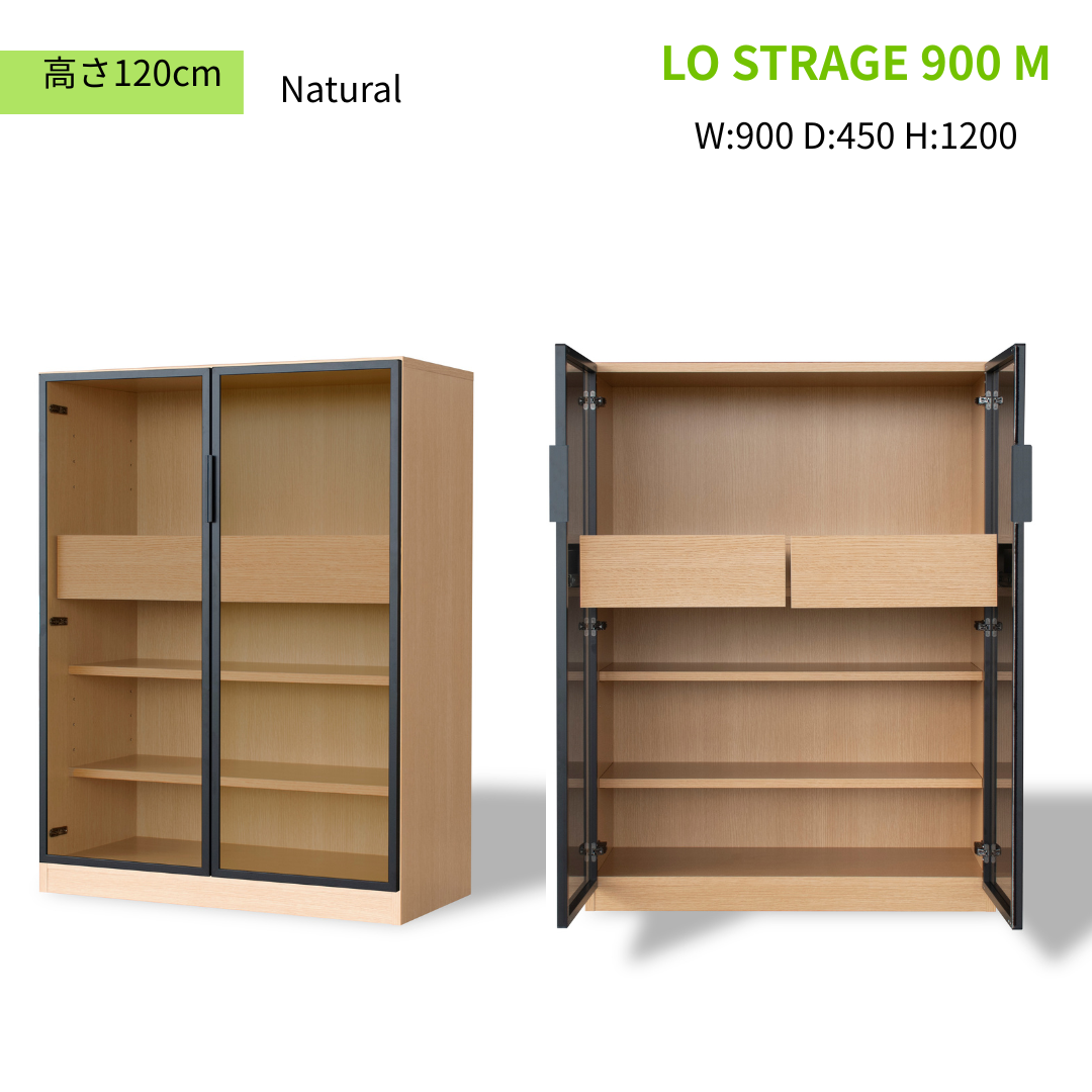 【GART ガルト】LO STRAGE 900 M / 900 H ストレージ キャビネット 幅90cm 高さ120cm 高さ180cm ワイド収納 ガラス扉 リビング 書斎 ワークスペース オフィス 収納家具