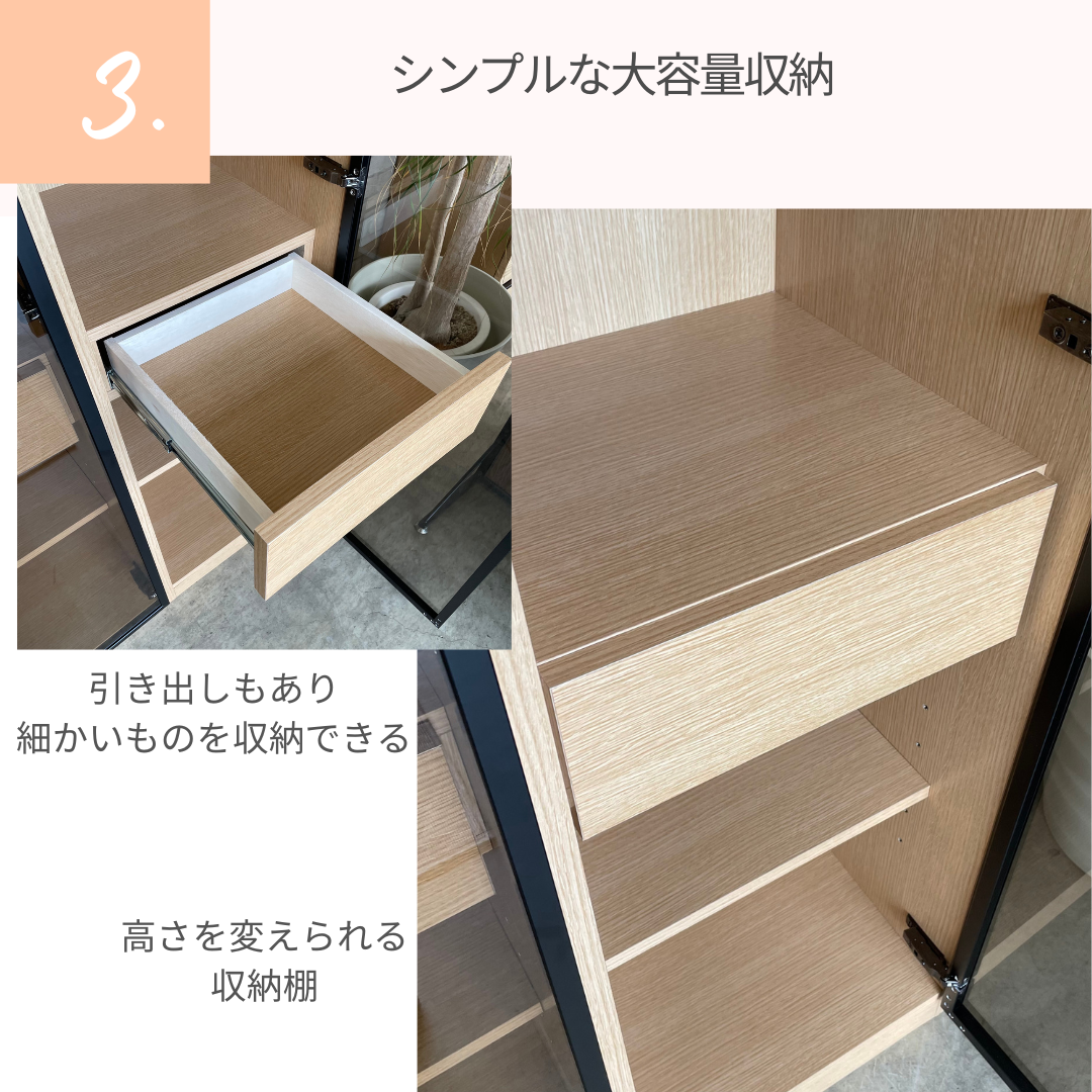 アルミフレーム×ガラス扉の前板が、