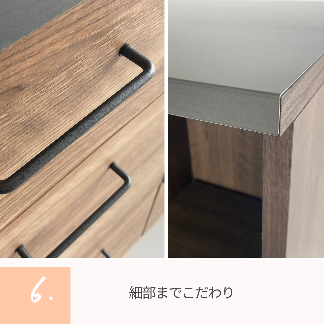 幅80cmの天板で、作業スペースと収納力を両立したキッチンカウンター。