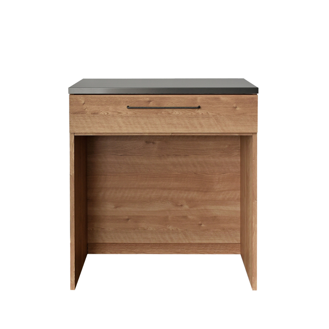 幅80cmの天板は、調理の下ごしらえや配膳補助はもちろん、在宅ワーク中の軽作業やノートPCの一時置きにも対応。