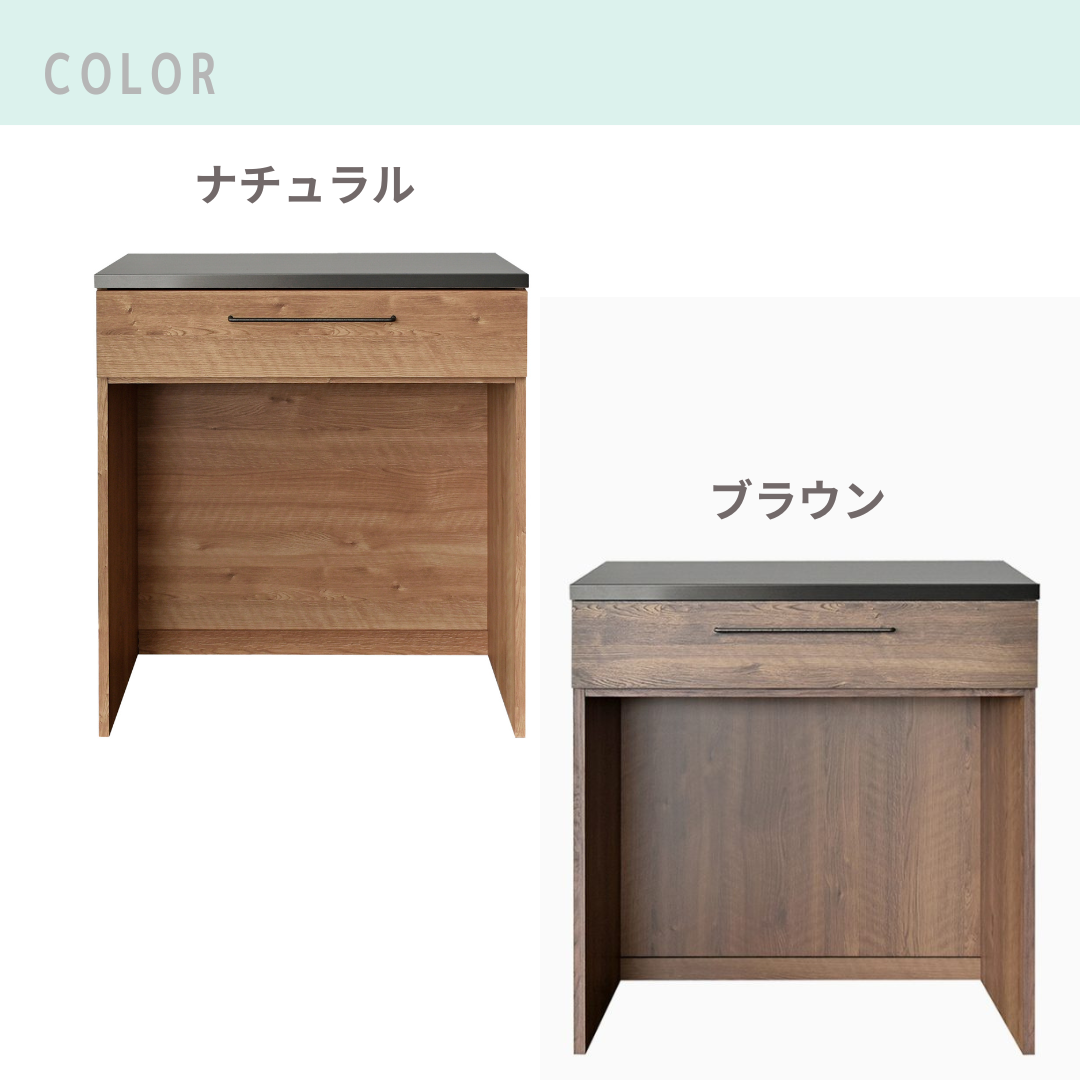 調理の補助台や配膳スペースとしてはもちろん、在宅ワーク中の軽作業にも使える高さと奥行き設計。