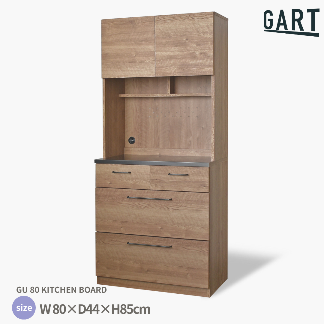 【GART】GU 80 KITCHEN BOARD キッチンボード 幅80cm レンジボード 食器棚 家電収納 作業台 カウンター収納 スライドテーブル対応 ナチュラル ブラウン 木目調 おしゃれ キッチン家具