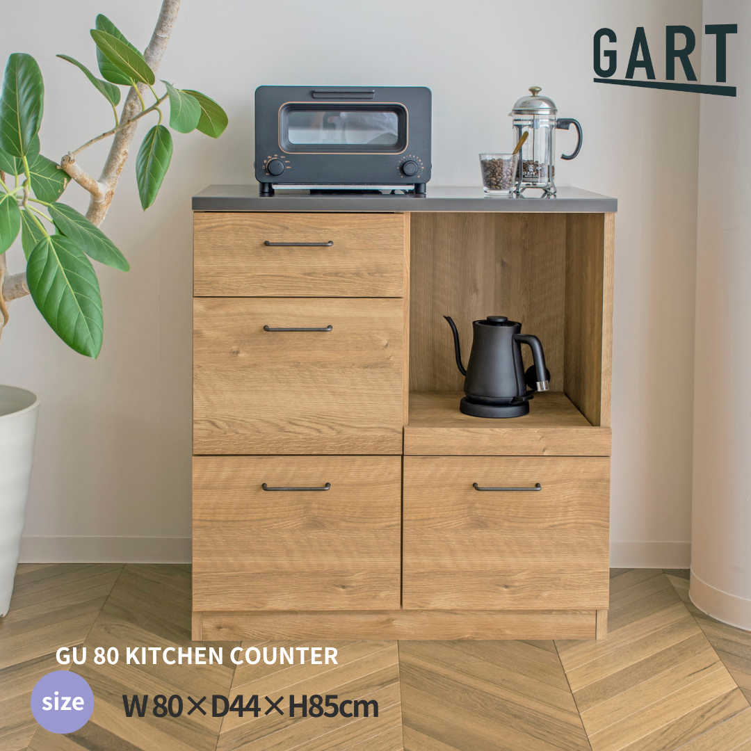 【GART】GU 80 KITCHEN COUNTER キッチンカウンター 幅80cm 作業台 収納 家電収納 レンジ台 カウンター収納 スライドテーブル対応 ナチュラル ブラウン 木目調 おしゃれ キッチン家具