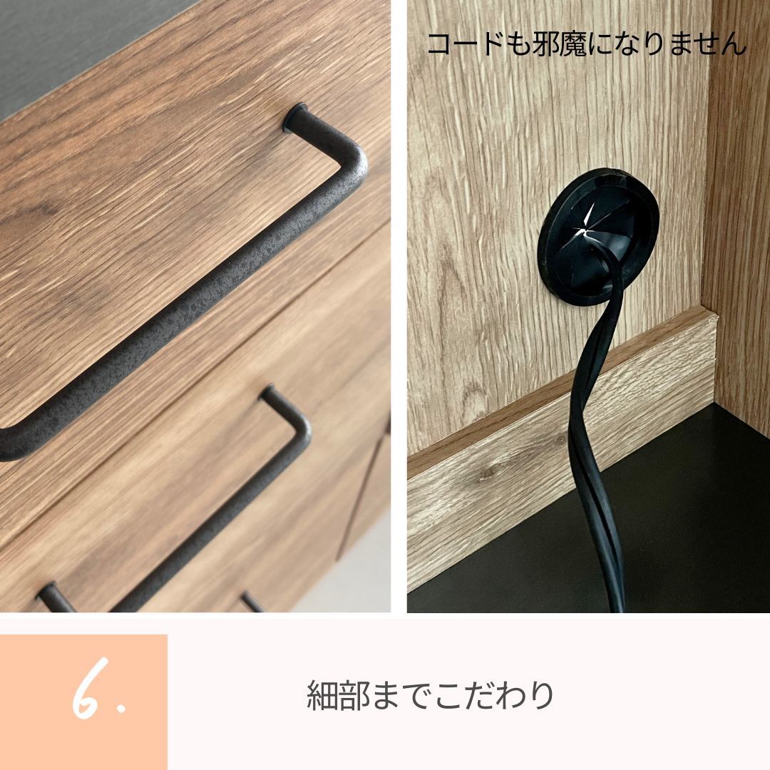 電子レンジや炊飯器、調理家電を一か所に集約することで、朝の準備や昼休みの食事支度がスムーズに。