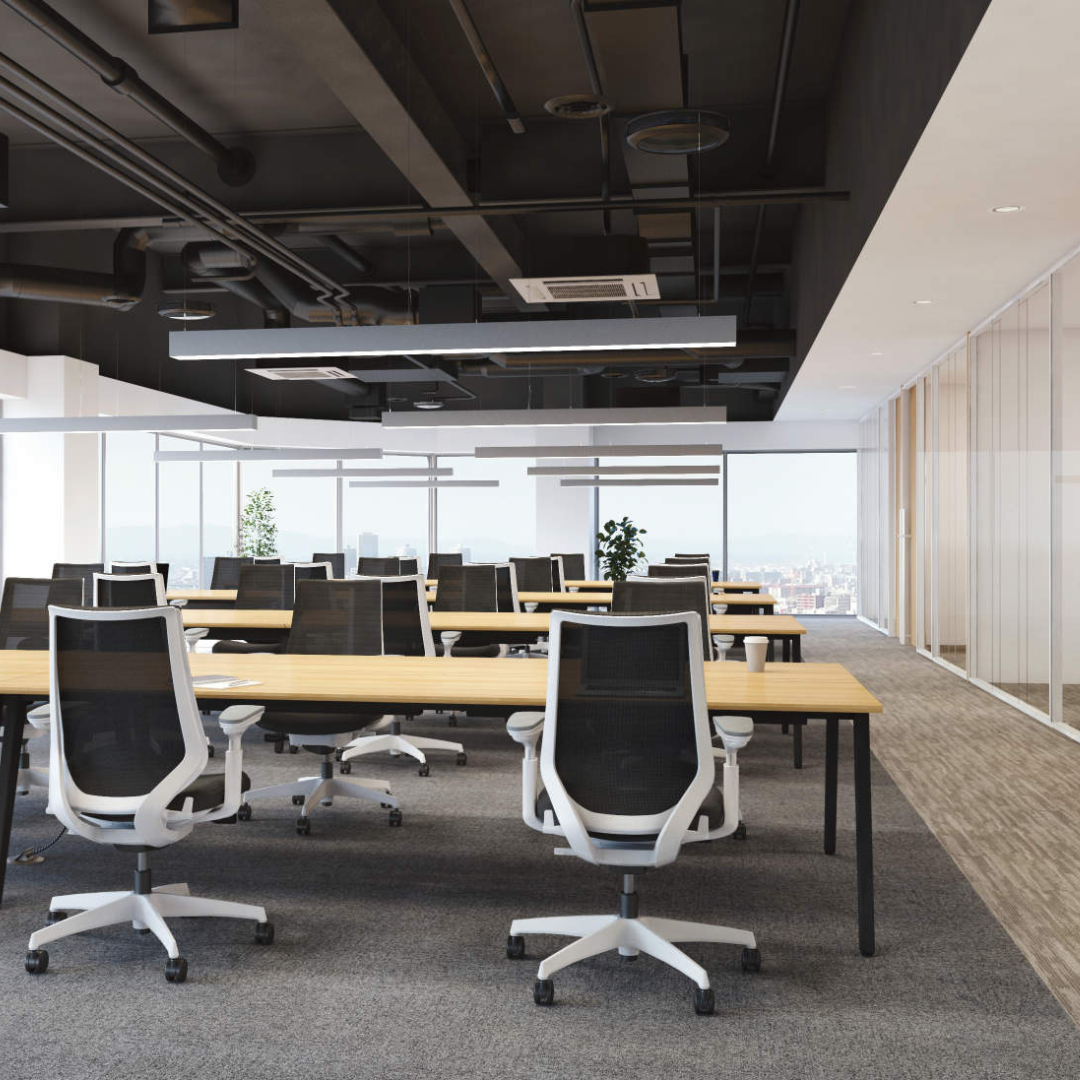 ホワイトフレームの洗練されたデザインは、在宅ワーク空間からオフィスまで幅広く対応。